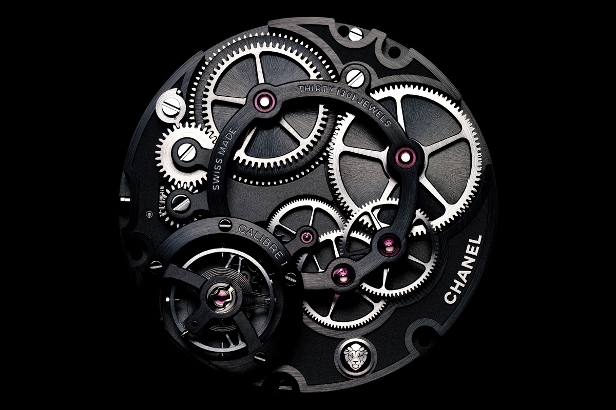 Diversi per struttura e funzioni, i tre movimenti sono comunque consequenziali: rispondono alla stessa logica e sono collegati da un senso di continuità. Chanel cioè sta creando una famiglia (organica e allo stesso tempo composita) di calibri, connotati dalla stessa “firma” costruttiva e rimarcati dall’estetica. Due caratteristiche infatti li collegano l’un l’altro con un’efficace uniformità visiva. Tutt’e tre sono caratterizzati dal colore nero, uno dei preferiti di Mademoiselle Coco (ponti e platine sono sempre anneriti da un trattamento ADLC). E tutt’e tre riportano il sigillo del Leone, il segno zodiacale della grande couturière, che diventa così il segno distintivo dei calibri di manifattura della Casa.