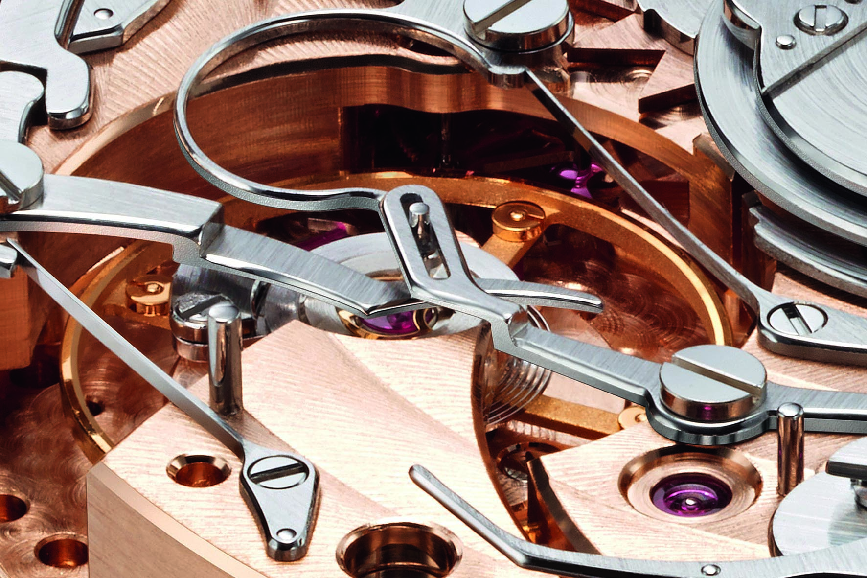 La Ripetizione minuti è “la” complicazione estrema. Richiede l’aggiunta di riferimenti, di un sistema preciso di sensori e infine di un dispositivo (sempre meccanico) che trasformi le informazioni dei sensori in una sequenza di segnali acustici. Sequenza, si badi bene, che deve essere costante nel tempo, che deve avere un ritmo univoco – mica suoni alla rinfusa. E ciò implica anche l’uso di un volano il cui scopo è appunto, di dare costanza al susseguirsi dei rintocchi.