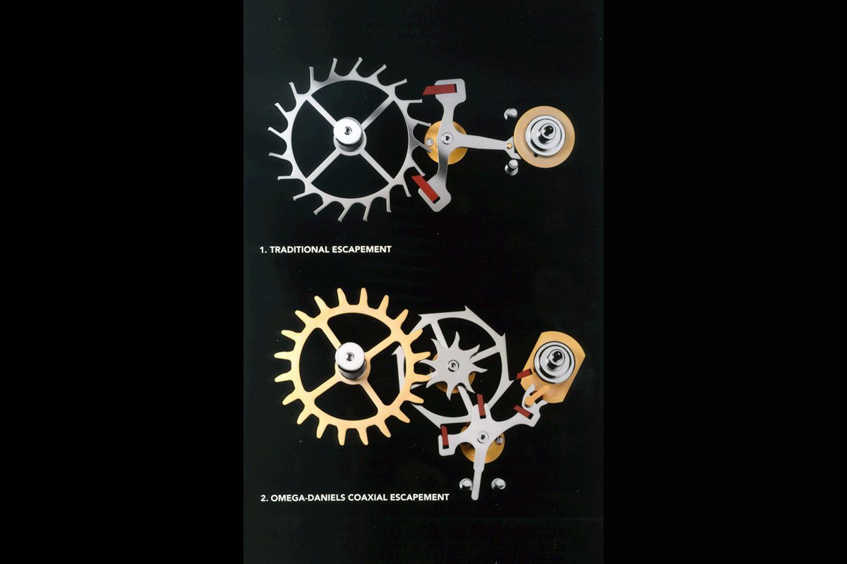 I vantaggi teorici di questo scappamento sono stati compresi da alcune marche cui Daniels lo aveva proposto, ma l’applicazione pratica si è scontrata contro l’apparente impossibilità di produrlo a costi ragionevoli. Poi Daniels è approdato a Swatch Group dove i tecnici della Nivarox (una azienda appartenente al gruppo) hanno prima scosso la testa e poi accolto la sfida. Che consisteva essenzialmente nella possibilità di migliorare le tecniche di lavorazione industriale di un ordine di grandezza, passando dai micron ai decimi di micron. Poi, giacché c’erano, hanno operato una geniale sintesi tecnica che ha portato al Co-Axial di oggi, efficace al punto di eliminare quasi del tutto le esigenze di lubrificazione.