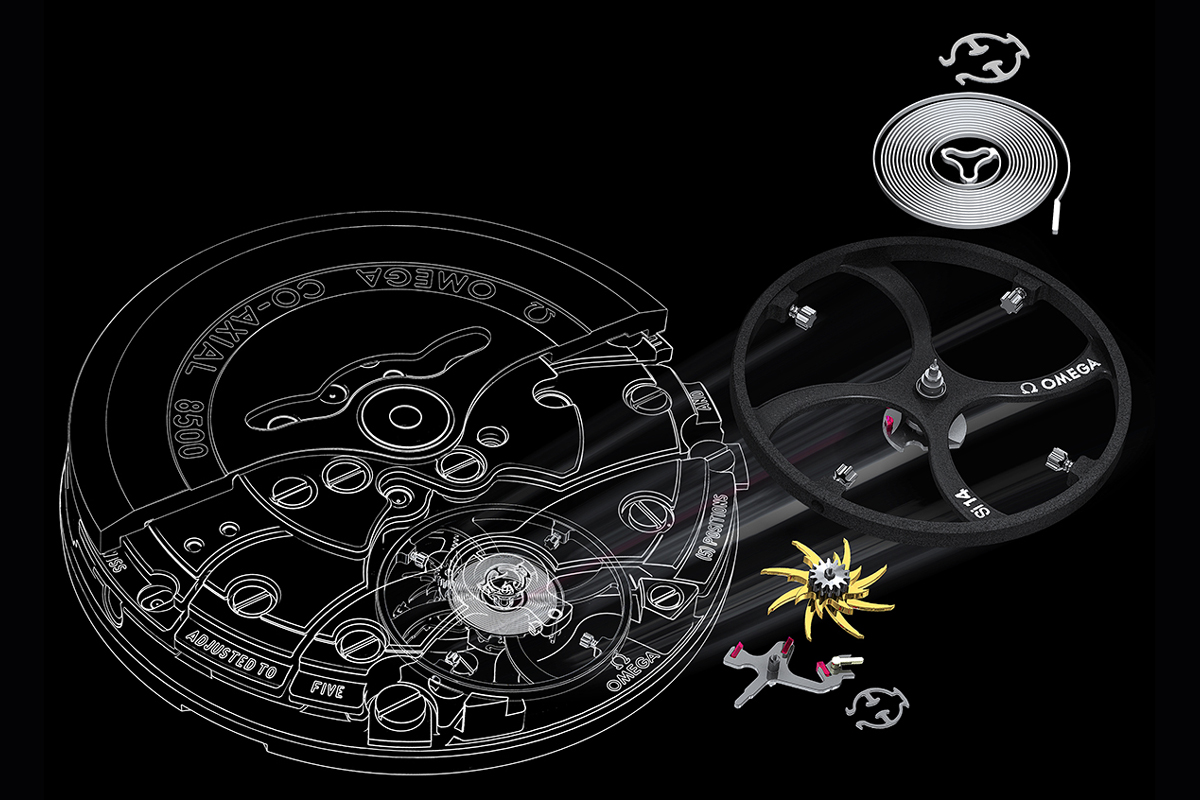 Il Co-Axial, inoltre, si trasforma in una sorta di moltiplicatore di velocità: dal momento che lo scappamento fornisce tre impulsi ad alternanza anziché due, la ruota di scappamento è più veloce di un terzo rispetto alla “velocità” del bilanciere. Sia nel Calibro 8800 che nel più recente 8806, introdotto nel 2017, la frequenza del bilanciere è di 25.200 alternanze/ora (A/h), ma la ruota di scappamento “corre” come se la frequenza fosse di 33.600 A/h. Tutto ciò ha effetti positivi sull’affidabilità e sulla precisione, anche perché le perturbazioni, percentualmente, perdono d’importanza nella maggior velocità. E qui mi fermo, promettendo di scrivere qualcosa di più completo nel futuro. Sta di fatto che lo scappamento Co-Axial è un vantaggio esclusivo di Omega.