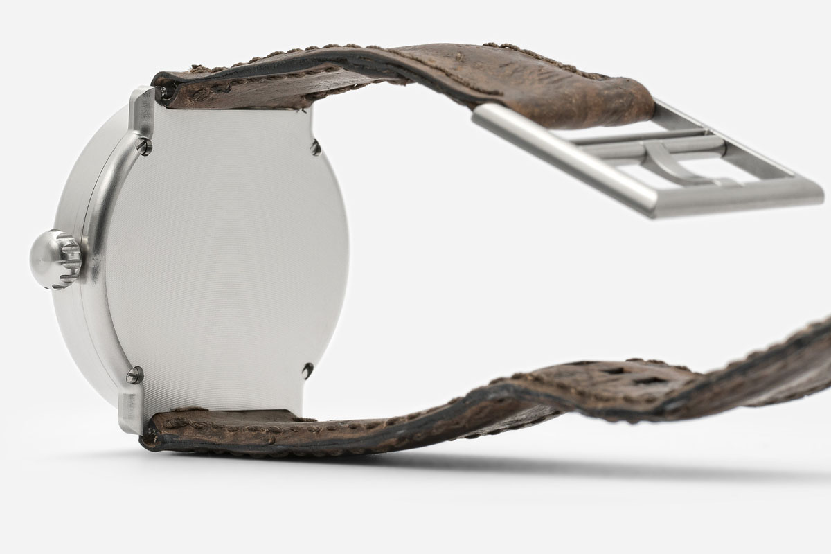 Anche dal punto di vista esterno, l’ochs und junior day/night riflette i canoni della marca: il design rigoroso, minimale, è privo di logo. Ma ha uno stile comunque riconoscibile soprattutto per alcuni “segni particolari”, come le tracce delle lavorazioni del metallo o l’assenza di vetro zaffiro sul fondello. La cassa infatti è monoblocco: in titanio grado 5, con un diametro di 40 mm di diametro, è disponibile anche in argento 925 e con un diametro di 43 mm.