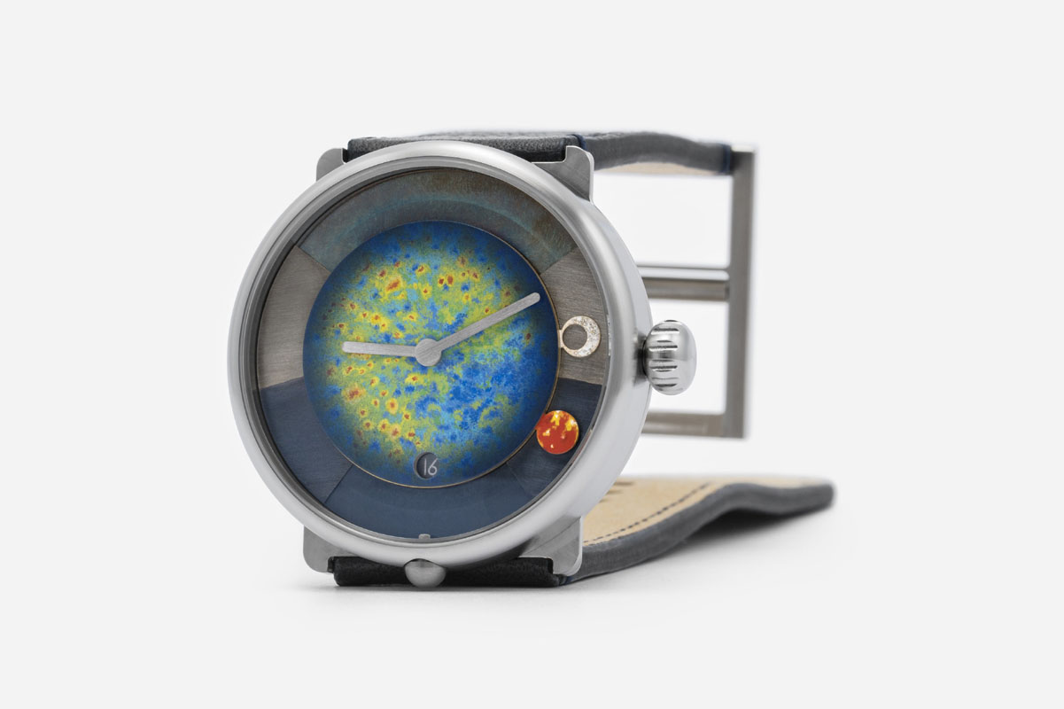 Sì, perché il concetto di “custom-made”, necessario per impostare le funzioni astronomiche, si estende anche all’estetica. Gran parte dell’habillage si può infatti personalizzare: dal materiale della cassa alla finitura del quadrante, dal colore di indici e lancette allo sfondo della data, fino al cinturino (declinato in 80 combinazioni). Ognuno se lo può costruire virtualmente su misura con il configuratore on line, e con l’eventuale consulenza di Beat Weinmann.