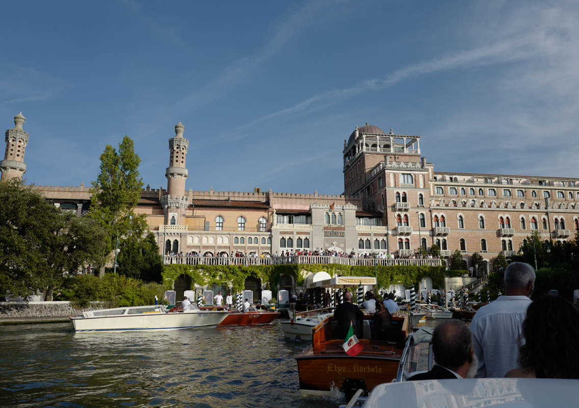 L’inaugurazione di Venezia 75 – com’è stata concisamente ribattezzata l’attuale edizione dell’evento lagunare – prevede per consuetudine la proiezione in prima mondiale del film d’apertura e una cena sulla spiaggia dell’Excelsior, il magnificente Grand Hotel del Lido la cui darsena interna è storicamente approdo di molti volti noti dello spettacolo, dell’arte, della politica e della cultura. Una serata strettamente a inviti e che ha inizio con il passaggio sul red carpet, quel mitico tappeto rosso steso davanti all’ingresso del Palazzo del Cinema, percorso dalla prima all’ultima giornata della Mostra da attrici, registi e attori. Che sfilano in passerella con abiti e gioielli da sogno, per la schiera ammassata dei fotografi in cerca dello scatto giusto e per i moltissimi fan che si fanno ore d’attesa per un selfie, un autografo o anche solo per poter dire “io c’ero”.