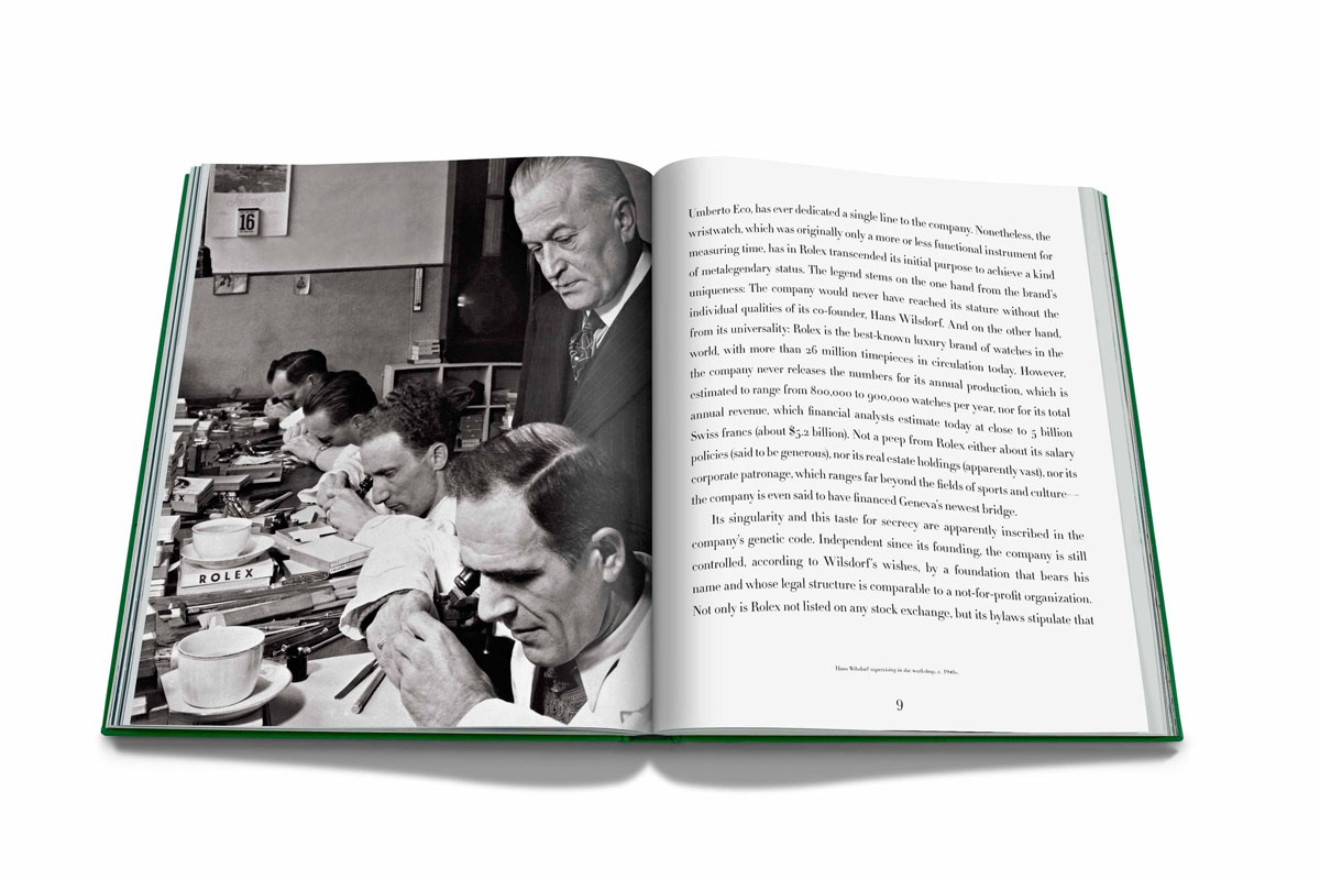 Presentata lo scorso settembre sul sito di Assouline – anche se le prime copie saranno in consegna solo domani -, la monografia di Fabienne Reybaud sembra avere le carte in regola per piacere a tutti gli appassionati di Rolex. Se non fosse per il prezzo: 845 dollari. Esorbitante sì, ma giustificato dalla cura con cui è stata confezionata. Fa parte infatti della Ultimate Collection, con cui l’editore parigino – noto per l’elevato livello dei libri in catalogo, soprattutto per i cosiddetti coffee table book – rende omaggio all’antica arte della legatoria. Ogni titolo di questa collana cioè è stampato in modo artigianale, su carta di estrema qualità, quindi rilegato a mano. Ed è realizzato con una produzione necessariamente limitata. Per veri bibliofili. ”'”><\/script>‘