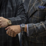 Ecco allora, per l’incontro d’affari, il completo più formale indossato con un Cronometro a Risonanza di F.P. Journe del 2014 o con un Crono monopulsante di Patek Philippe del 1928. Mentre per il party più esclusivo, lo smoking si abbina a un Cartier Tank in platino del 1998 o con un altro Patek, sempre in platino, datato 1950. Al riguardo Wei Koh, fondatore di The Rake, ha sottolineato l’idea di valorizzare i grandi classici proprio nella loro essenza di “secondo polso”. Al di là dell’opportuna revisione tecnica, cioè, è importante che gli esemplari d’epoca mantengano inalterati i segni del tempo – graffi, ammaccature, viraggi cromatici, imperfezioni. Perché le tracce del passato ricordano la loro storia, sono parte integrante del loro fascino e li rendono unici.