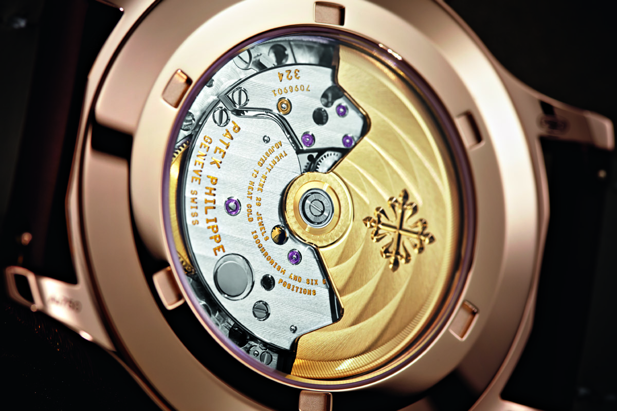 Per tornare al Calatrava Pilot Travel Time, comunque, i due modelli di quest’anno (la Referenza 5524R più grande, e la Referenza 7234R più piccola) sono identici in tutto e per tutto. Hanno la stessa estetica, giocata sull’abbinamento cromatico dell’oro rosa e del cioccolato, con il quadrante in una calda tonalità bruno/testa di moro che va a sfumare fino al nero, e il cinturino in pelle marrone “vintage”. Ma soprattutto montano la stessa meccanica, il calibro automatico 324 FC FUS, ovviamente di manifattura.