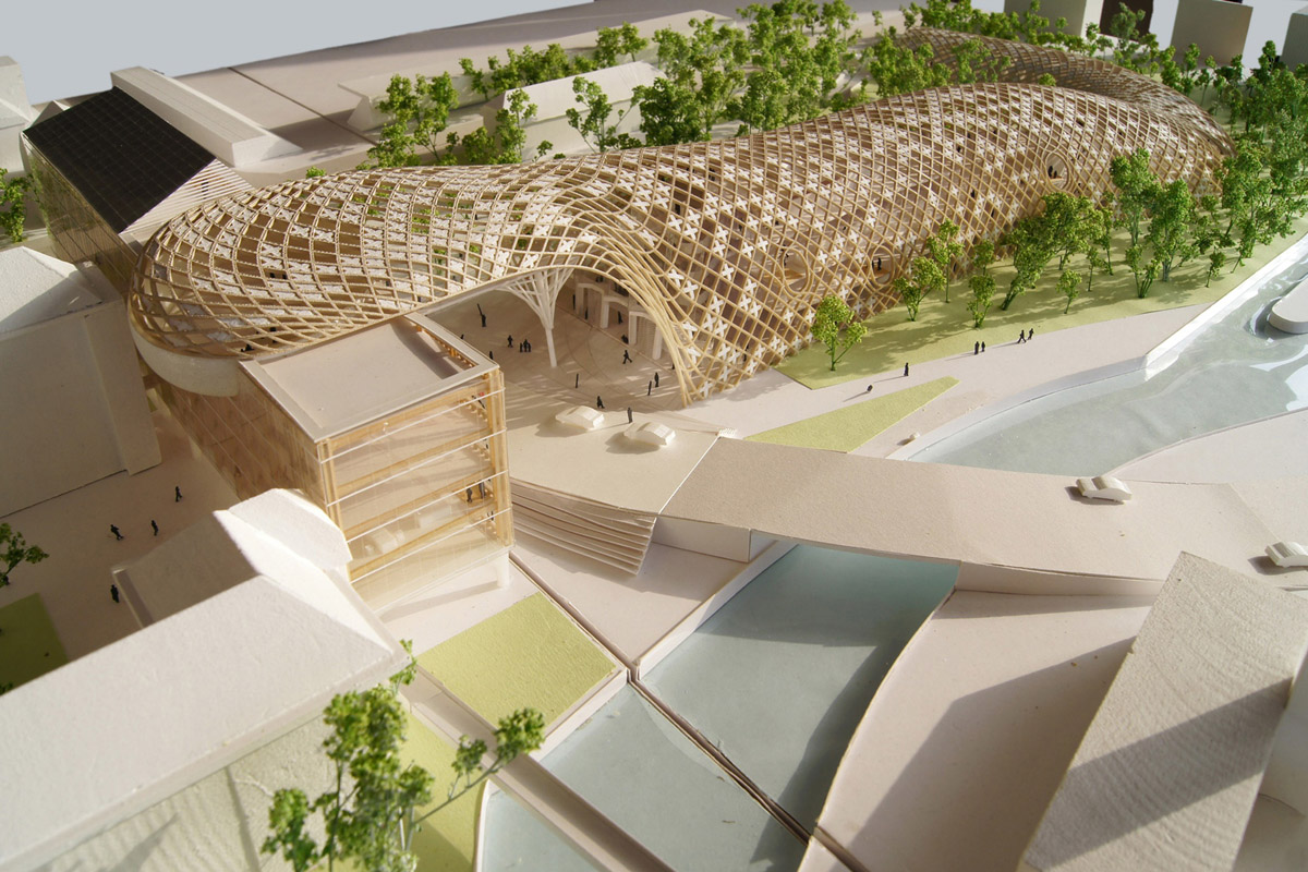 La grandiosa cattedrale del design sarà ultimata per marzo ed è stata progetta dall’architetto giapponese Shigeru Ban, universalmente riconosciuto come strenuo cultore della sostenibilità e raffinato specialista delle tensostrutture. Basate in questo caso su legname “Swiss Made” – così come gli orologi Swatch -, disposto a forma di celle d’un immenso alveare. Pur nella sua imponenza, come ha avuto modo di raccontarci in una conversazione a fine evento Carlo Giordanetti, che del marchio è Direttore creativo, trasmette al visitatore trasparenza, leggerezza, colore e una certa trasgressione nel progetto. Riportando immediatamente ai parametri stilistici su cui da sempre si fonda la peculiarità di Swatch.