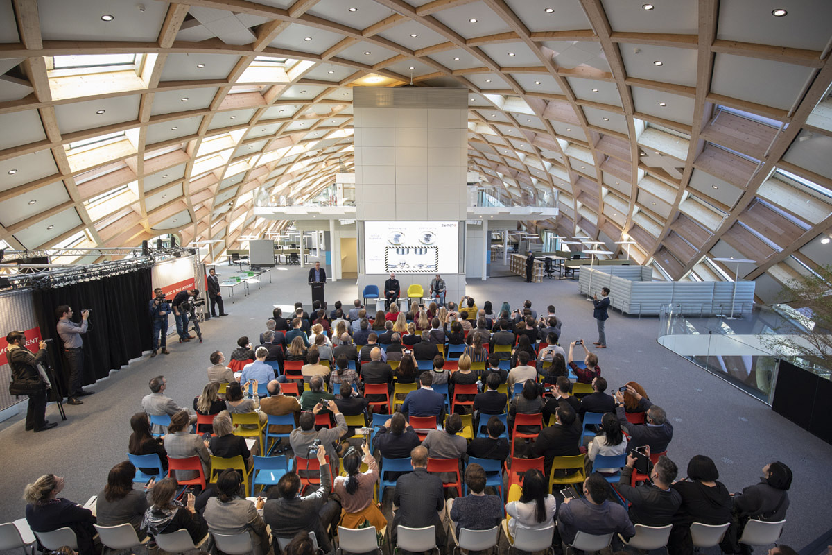 La nuova sede Swatch – ancora in fase d’ultimazione, ma quello che si è visto basta e avanza per rendersi conto della straordinarietà dell’opera – è stata il palcoscenico di un evento internazionale, avvenuto lo scorso 14 febbraio a Biel, storico borgo industriale della Svizzera tedesca. Durante il quale è stata presentata in anteprima alla stampa l’ultima novità del Marchio. Ovvero un nuovo e molto intrigante orologio – dal punto di vista estetico e meccanico, ma anche concettuale – battezzato Swatch FlyMagic.