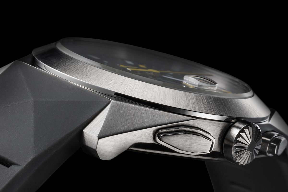 Nuovo Stealth implica che ci sia un “vecchio” Stealth, giusto? Una scartabellata agli archivi e lo abbiamo trovato. Le caratteristiche di base sono le stesse di oggi. Quindi: cassa e lunetta in acciaio, fondello in titanio, però con cinturino in gomma e quadrante in fibra di carbonio. Era il 2008 e la collezione nasceva per dare a buon prezzo un orologio “invisibile” agli allergeni, proprio come l’aereo Stealth era invisibile ai radar. Aveva un diametro ampio, di 43 millimetri, mentre la versione attuale scende a dimensioni più ragionevoli (41 millimetri), ma conserva il design spigoloso della prima versione, rielaborato nel profilo geometrico delle anse.