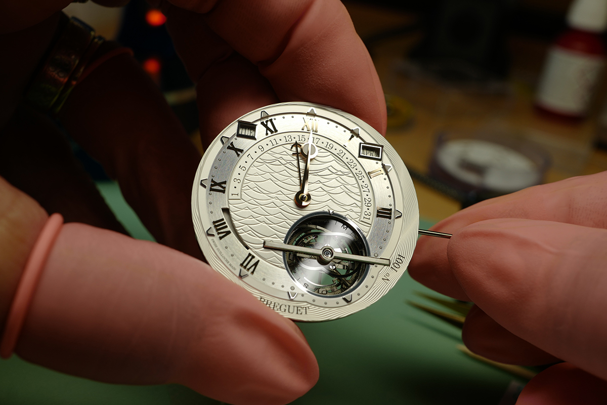 Un giorno faremo un discorso serio, serissimo, su quanto Swatch Group abbia investito in tecnologie e materiali per l’orologeria. Qui mi limito a notare come la fabbrica Breguet sia – a ben vedere – proprio la fabbrica che Abraham-Louis Breguet vorrebbe, se fosse vivo oggi. C’è il fiume della storia, simboleggiato dalla macchina per realizzare i quadranti: una lastra d’oro incisa a mano da un artigiano specializzato (oggi come allora) ma con l’aiuto di una macchina a pantografo che rende più facile la produzione (più che altro limita gli errori e quindi gli scarti) senza però snaturare l’operazione o renderla alla portata di chiunque.