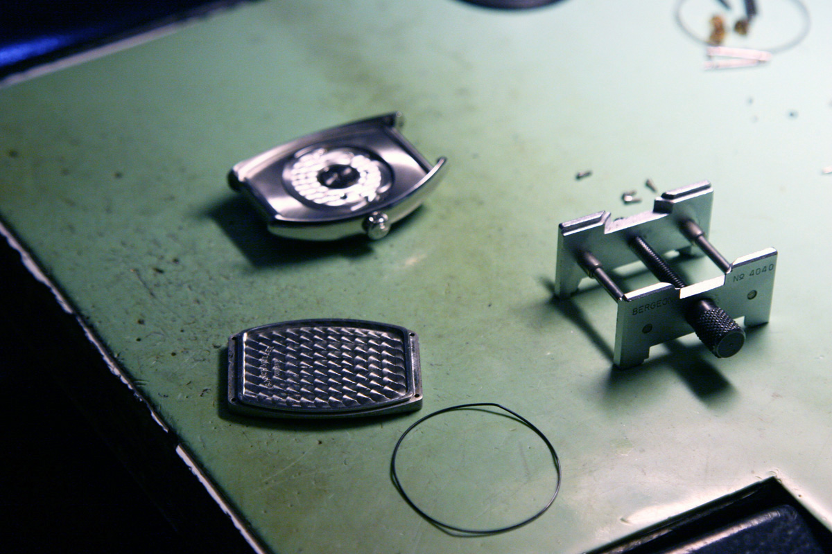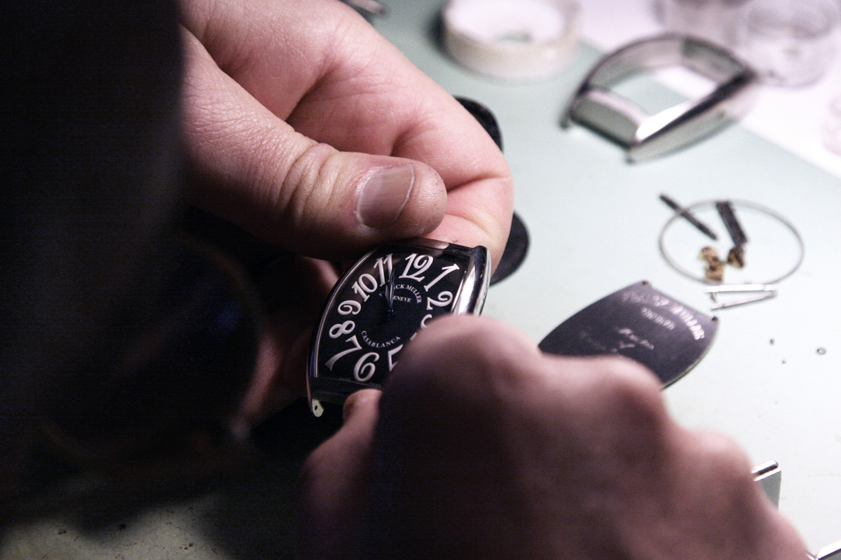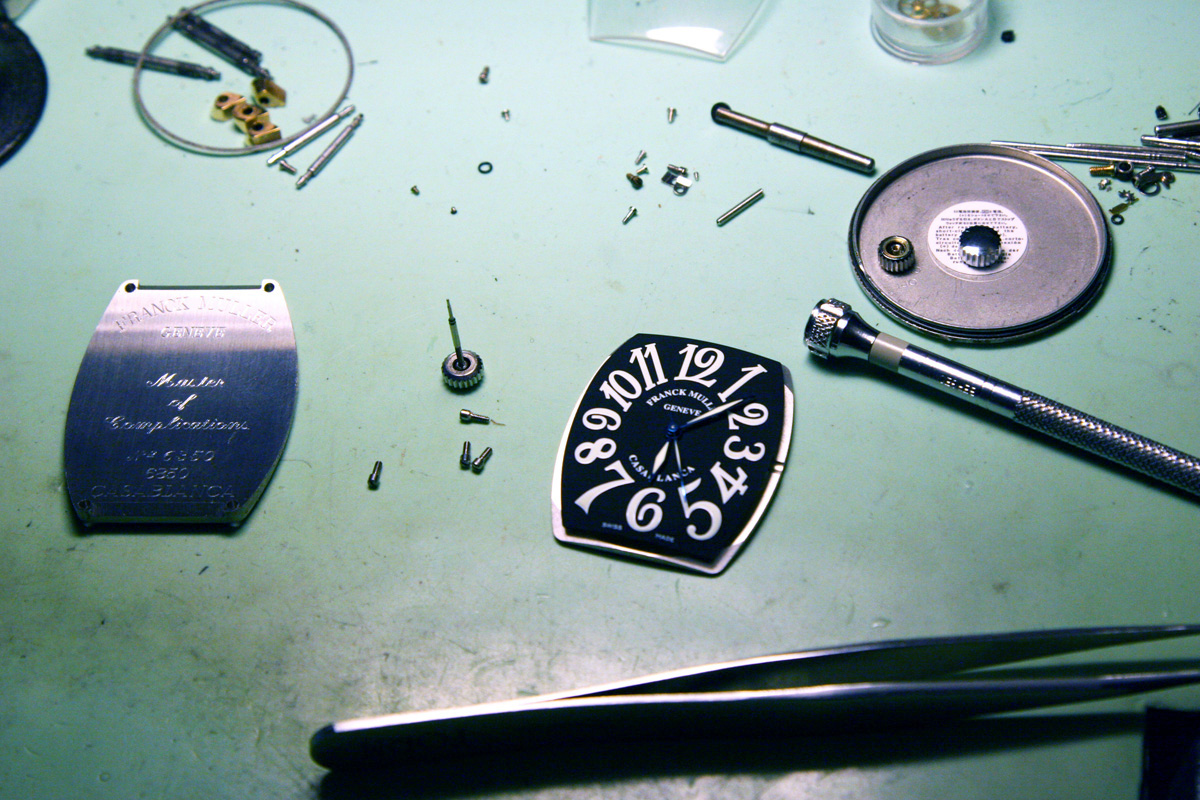 Perché chi pensa ad un’operazione rapida, ad un pit-stop in stile F1 – togli il vetro, rimetti il vetro e via andare – si sbaglia di grosso. L’input della casa, in questo caso di Franck Muller, è infatti rigoroso: se un orologio rientra in assistenza con un vetro rotto è d’obbligo non solo la sostituzione dello stesso ma anche la revisione e il lavaggio del movimento. Per una ragione molto semplice. Scongiurare il rischio che frammenti di schegge, se non addirittura polvere di vetro, se ne siano andati a spasso nel movimento. Ma anche che l’organo regolatore sia rimasto compromesso o che il quadrante, poggiato su microscopici piedini, sia finito fuori sede interferendo con il movimento delle lancette.
