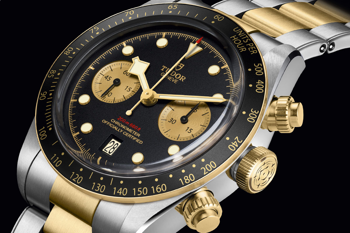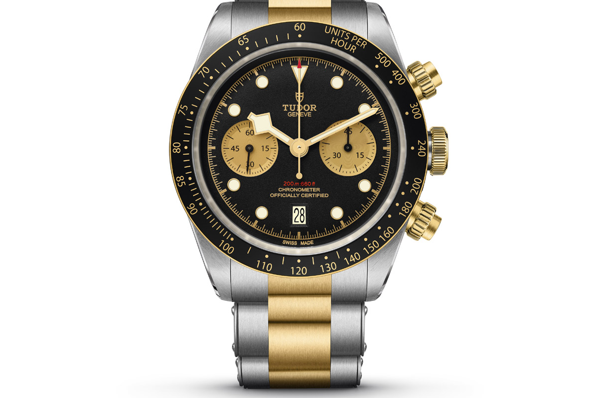 Altrettanto – cioè ottimo rapporto fra prezzo e qualità – si può dire del Tudor Black Bay Chrono S&G, ossia Steel & Gold, acciaio e oro. Qui sbatto nuovamente il naso contro il muro dell’età. Per la mia generazione le versioni acciaio-e-oro di quasi tutti gli orologi sono “anche basta”, mentre per i “ggiovani” sono quasi una piacevole novità. 41 mm di diametro, 6.500 euro (di oro ce n’è parecchio, soprattutto nel bracciale), movimento imparentato con il B01 di Breitling; ma come abbiamo visto Tudor cambia l’intero organo regolatore e, si direbbe, anche la forma dei denti della ruota a colonne. È un bell’orologio che diventa un best buy (il prezzo scende a 5.350 euro) con il cinturino in pelle o in tessuto.