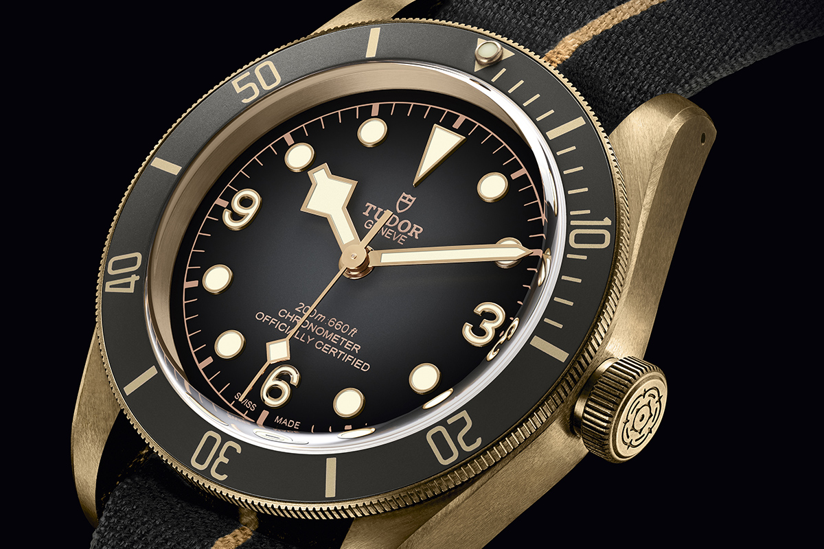 Tutti e tre i Black Bay 2019 sono evidentemente ispirati a modelli del passato. Il più evidentemente attuale è il Tudor Black Bay Bronze, un orologio subacqueo che sarebbe piuttosto classico non fosse per il metallo usato per l’ampia cassa (43 mm). Che però, noto, ha il fondello in acciaio reso color bronzo da un trattamento PVD. Un’accortezza per venire incontro alle esigenze di persone con il sudore particolarmente acido che potrebbe causare fastidi alla pelle del polso. Una scelta intelligente, come intelligente è la conformazione della corona, particolarmente facile da gestire. Una corona che, per altro, ritroviamo nel cronografo e in altri modelli della collezione.