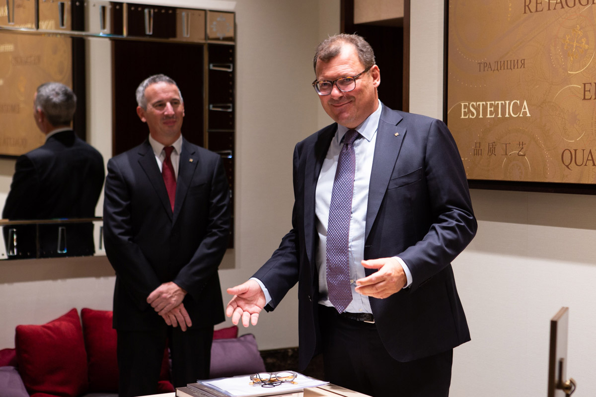 Inutile ricordare che i due sono i titolari delle boutique Hausmann & Co. Un’istituzione, a Roma. Storici punti di riferimento per orologi e gioielli haute-de-gamme, nonché fornitori ufficiali di tutti gli strumenti di misurazione del tempo della Santa Sede. Le insegne Hausmann & Co. si trovano nelle vie più storiche e affascinanti della città (via del Corso, via dei Condotti, via del Babuino), alle quali si sono aggiunti negli ultimi giorni quelle dedicate esclusivamente a Patek Philippe, di nuovo in via dei Condotti. La nuova boutique Patek Philippe Hausmann in realtà è un progetto maturato nel corso degli anni e costruito con tutta la raffinatezza di cui il famoso dettagliante romano e la maison sono capaci. Perché riesce a conciliare i 225 anni di presenza del primo nella Capitale con l’esclusività e l’unicità, riconosciuta nel mondo, della seconda.