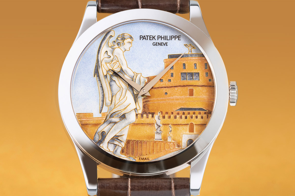 In occasione del vernissage, lunedì scorso, la boutique Patek Philippe Hausmann tra l’altro ha visto il lancio di un’esclusiva collezione di cinque modelli millesimati, d’impronta tipicamente romana: due pezzi unici con quadrante in smalto cloisonné raffiguranti Piazza di Spagna e Castel Sant’Angelo; altri due Calatrava (Referenza 5296), in oro rosa e bianco, con quadranti inediti che indicano le ore XII con numeri romani, rigorosamente in tiratura limitata; e un’altra edizione limitata, ancora più esigua, di un esemplare di Ore del Mondo (Referenza 5230R), con motivo centrale guilloché realizzato a mano in rosso porpora, colore romano per eccellenza, e indicazione dell’Urbe tra le città, sul disco dei fusi orari.