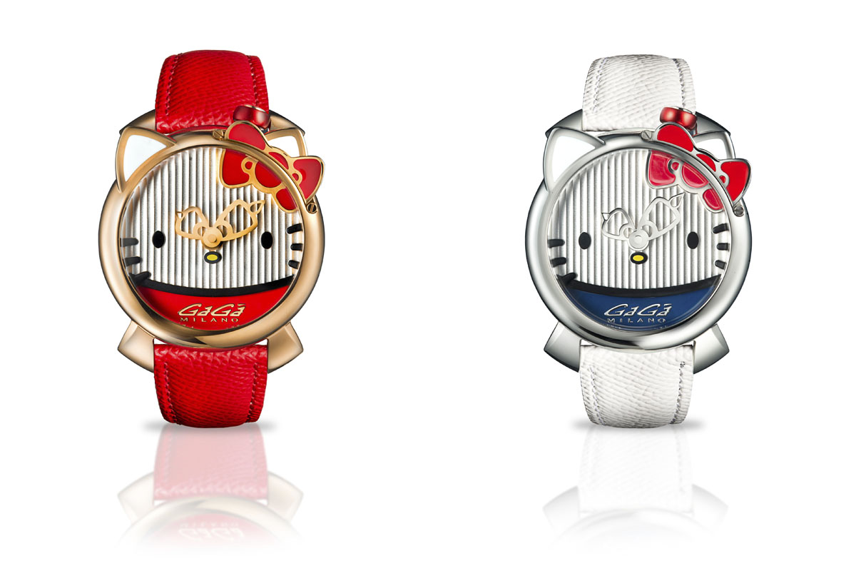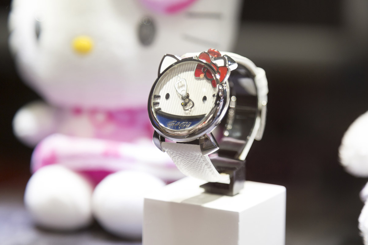 Due i modelli di orologi presentati durante l’evento al flagship store milanese di corso Venezia 8: uno in acciaio e uno color oro rosa. Entrambi con cassa tonda per riprodurre il viso del personaggio, quadrante smaltato bianco per far risaltare gli occhi e cinturino in pelle rosso o bianco per ricordare il fiocco. Infine numero di serie sul fondello per essere davvero un oggetto per collezionisti. Venduto al pubblico a 350 euro.