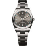 Cassa (39 mm) in acciaio Oystersteel (904L), impermeabile fino a 10 atm. Movimento meccanico a carica automatica, calibro 3132 di manifattura, spirale Parachrom blu paramagnetica, dispositivo antiurto Paraflex, certificato ufficiale di cronometro (COSC). Quadrante satinato, indici in oro bianco e lancette luminescenti, vetro zaffiro, bracciale Oyster in acciaio Oystersteel. Orologio certificato Cronometro Superlativo. 5.300 euro
