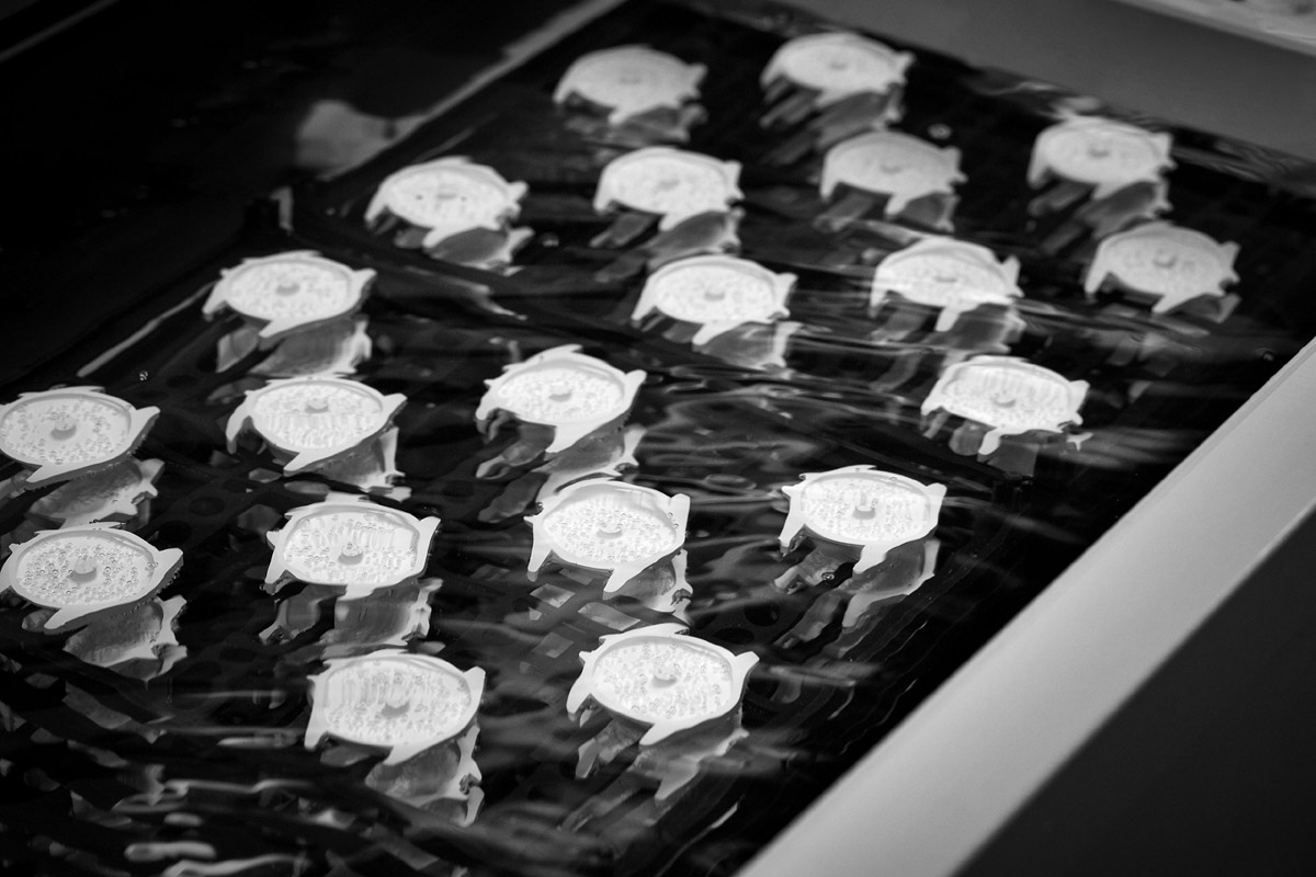 Proprio come uno chef seleziona le materie prime migliori per preparare i suoi piatti, così da G&F Châtelain si sceglie una buona polvere a base ossido di zirconio, cui si aggiungono dei pigmenti chiari o scuri per garantire il bianco e il nero. A quel punto entra in gioco un elemento chiave per la prima fase della lavorazione, quel polimero indispensabile a legare gli elementi tra loro. Ciò che si ottiene è una pasta simile a un dentifricio, modellabile a caldo, che viene iniettata a pressione all’interno di stampi, dove viene lasciata raffreddare e rapprendere.