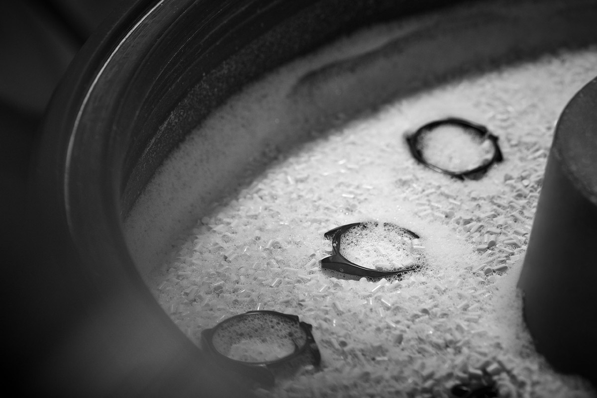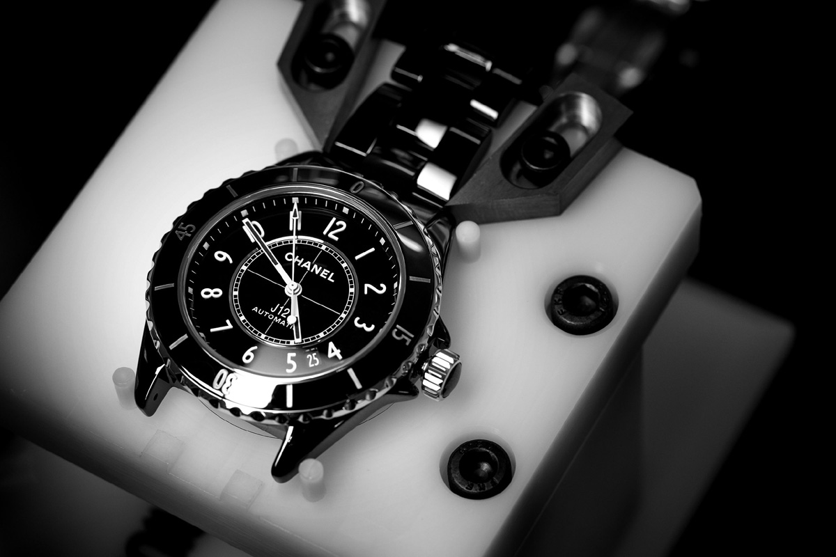 Si arriva così agli step finali. Ovvero la lucidatura, realizzata aggiungendo a un mix di acqua e sapone della polvere di diamante; l’unica sostanza in grado di levigare alla perfezione l’ormai fortissima ceramica all’interno di un tamburo rotante. O al contrario le operazioni di finitura, con trattamenti che la rendono opaca. Quindi il duplice controllo qualità, per cui quello che un occhio umano ha validato con attenzione viene sottoposto a un ulteriore check. Le diverse componenti ora sono pronte per l’assemblaggio, fino al montaggio del movimento nella cassa. Nel caso del J12 si tratta del Calibro 12.1, sviluppato in esclusiva per la Maison da Kenissi, la manifattura ginevrina nel cui capitale Chanel ha fatto il suo ingresso nel gennaio scorso.