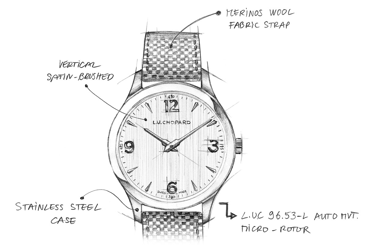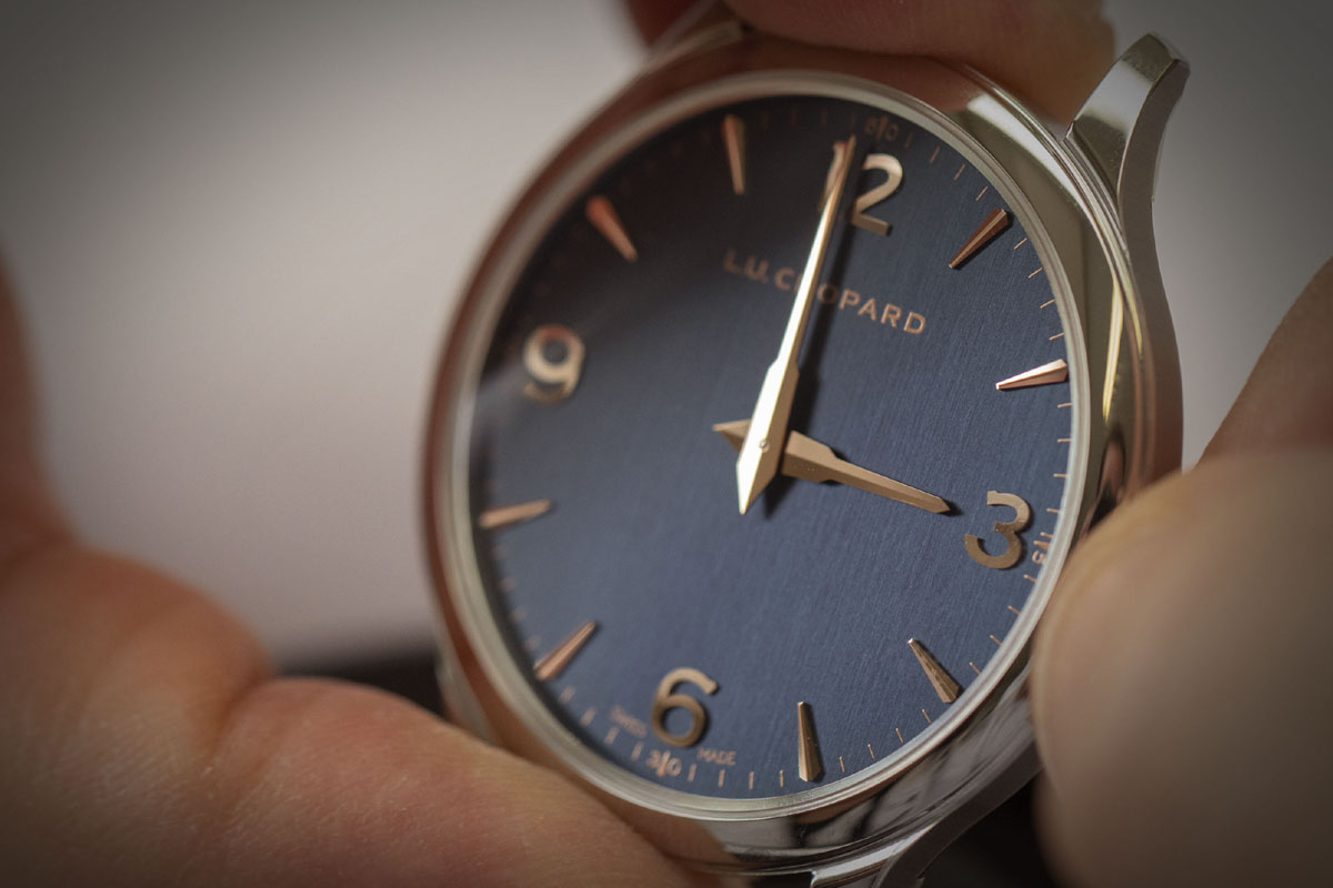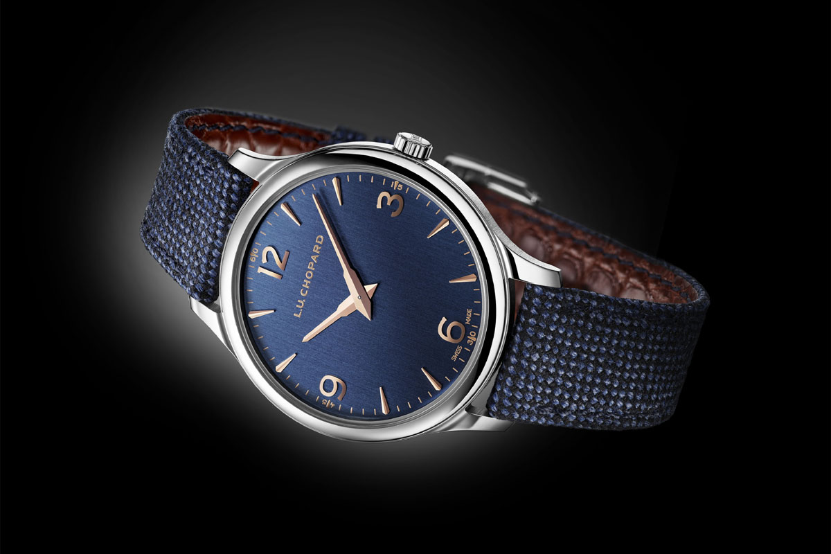 Quindi il cinturino. Un dettaglio che di solito non prendiamo neppure in considerazione. Ma in questo caso è parte integrante dello stile del nuovo LUC XP: è realizzato infatti in un tessuto di lana Merinos, foderato in pelle di alligatore. Un tocco quasi casual, che contribuisce a sdrammatizzare l’estetica dell’ultrapiatto e lo rende adatto a un uso quotidiano. Quale che sia il look: dall’abito giacca e cravatta al paio di jeans con golf e camicia.