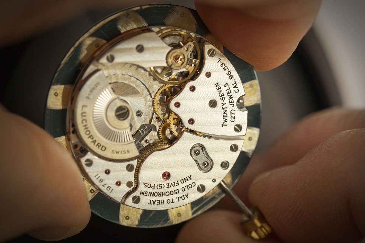Quindi il movimento, rigorosamente di manifattura. Anche il nuovo L.U.C XP monta, come il suo più immediato predecessore (del 2017), un calibro automatico L.U.C 96-53-L. Fornito di micro-rotore decentrato, in modo da mantenere lo spessore ridotto; la piccola massa oscillante è realizzata in tungsteno, un metallo pesante, ed è quindi capace di caricare il doppio bariletto, tipico della Casa (tecnologia Twin, brevettata). Tuttavia la presenza del doppio bariletto, per giunta coassiale, non va a influire sullo spessore, che rimane limitato a 3,3 mm. Notevole.