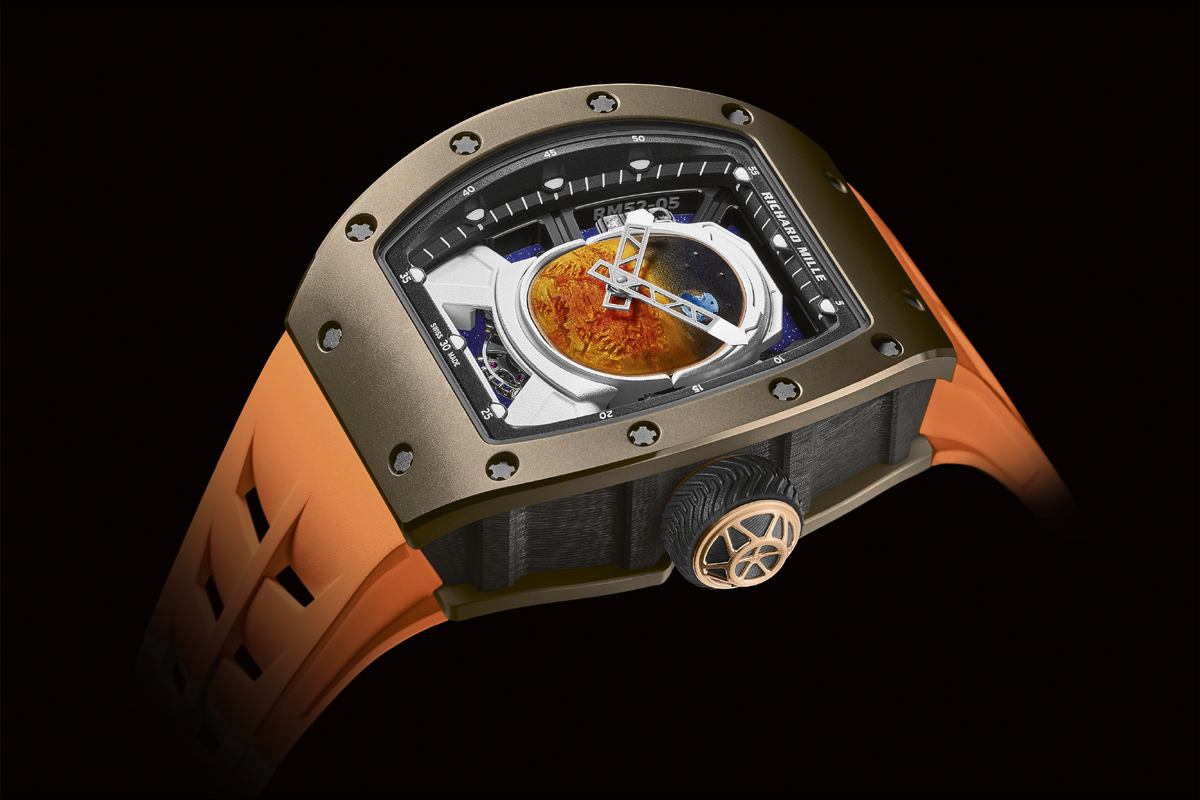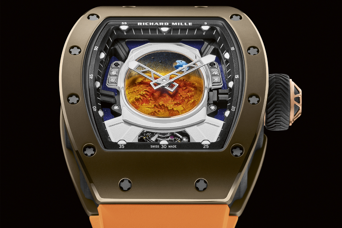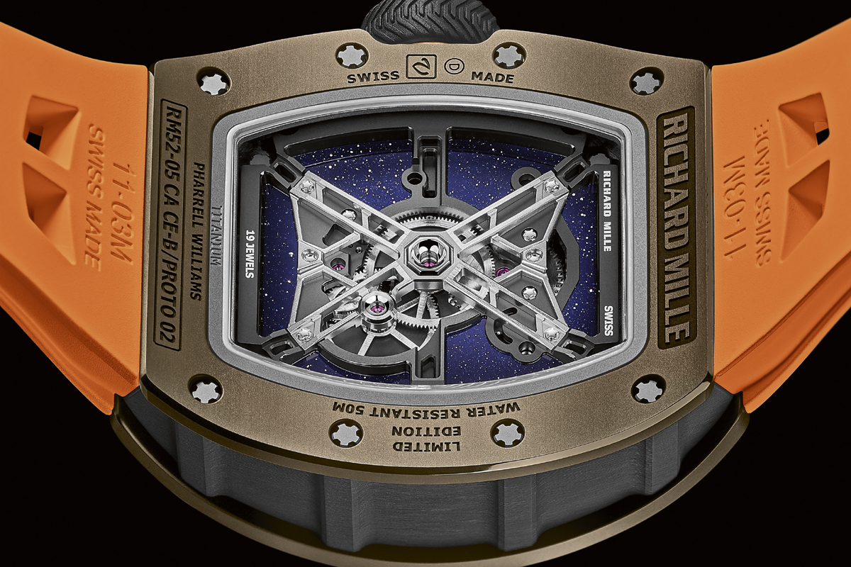 E allora perché ne parliamo qui? Perché “non è il possesso, realtà di pochi e gioia dei collezionisti, a contare; ma è la conoscenza di un mondo straordinario racchiuso in un quadrante”. (Non sono parole mie: le scrive Alessandro Cannavò nel lucido, toccante editoriale dell’ultimo speciale Orologi del Corriere della Sera). E l’RM 52-05 Tourbillon Pharrell Williams merita davvero un’analisi, ricco com’è di peculiari caratteristiche costruttive. A cominciare dal quadrante, appunto, interamente realizzato a mano da maestri artigiani.