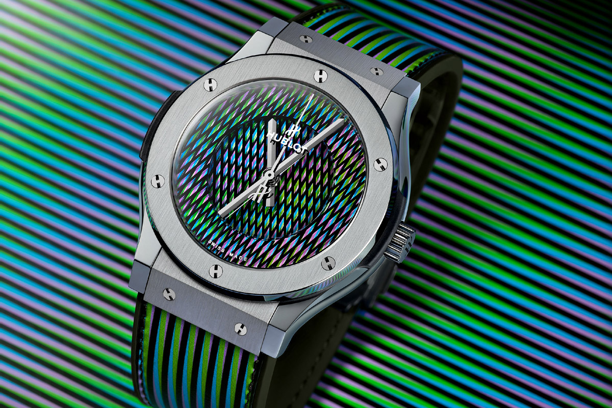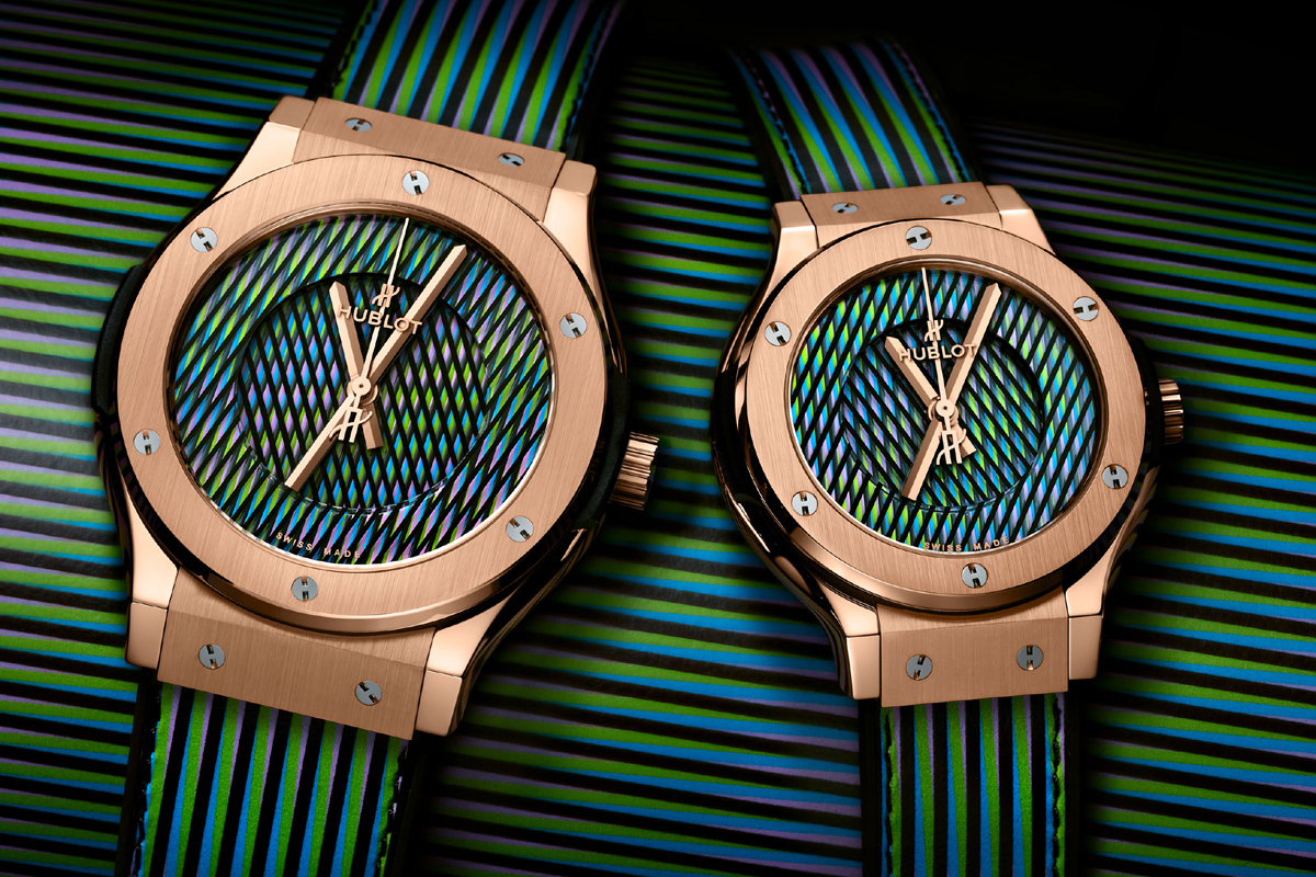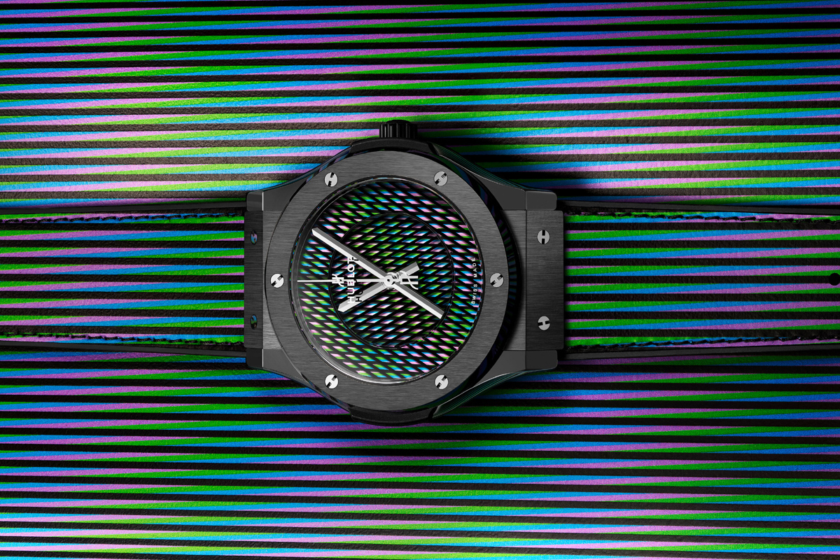 Nel corso dei suoi settanta e passa anni di carriera, Cruz-Diez aveva dimostrato che il colore esiste come realtà indipendente attraverso la visione dell’osservatore. “Il colore è luce, tempo e spazio: non è nel passato, è un costante presente”, diceva. E questa asserzione è anche alla base del Classic Fusion Cruz-Diez, l’ultima collaborazione avviata con Hublot, con cui aveva avuto i primi contatti nel 2015. Un progetto che non ha potuto vedere terminato, ma che concretizza appieno la sua visione artistica: “Il colore è una realtà effimera, autonoma e in continua evoluzione”.