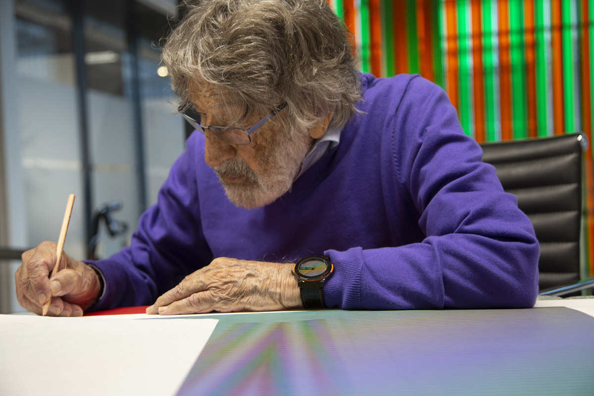 Nato a Caracas nel 1923 e scomparso la scorsa estate a Parigi, dove viveva dagli anni Sessanta, Cruz-Diez si era distinto nel panorama artistico internazionale per gli studi sui fenomeni cromatici. È ricordato soprattutto per i grandiosi interventi in spazi pubblici cittadini, di forte impatto ambientale e suggestione emotiva. Ma con le sue ricerche aveva ottenuto un consenso unanime, come rivelano i suoi lavori tuttora esposti nelle collezioni permanenti dei più importanti musei del mondo: dal Beaubourg di Parigi alla Tate Modern di Londra, fino al Moma di New York.
