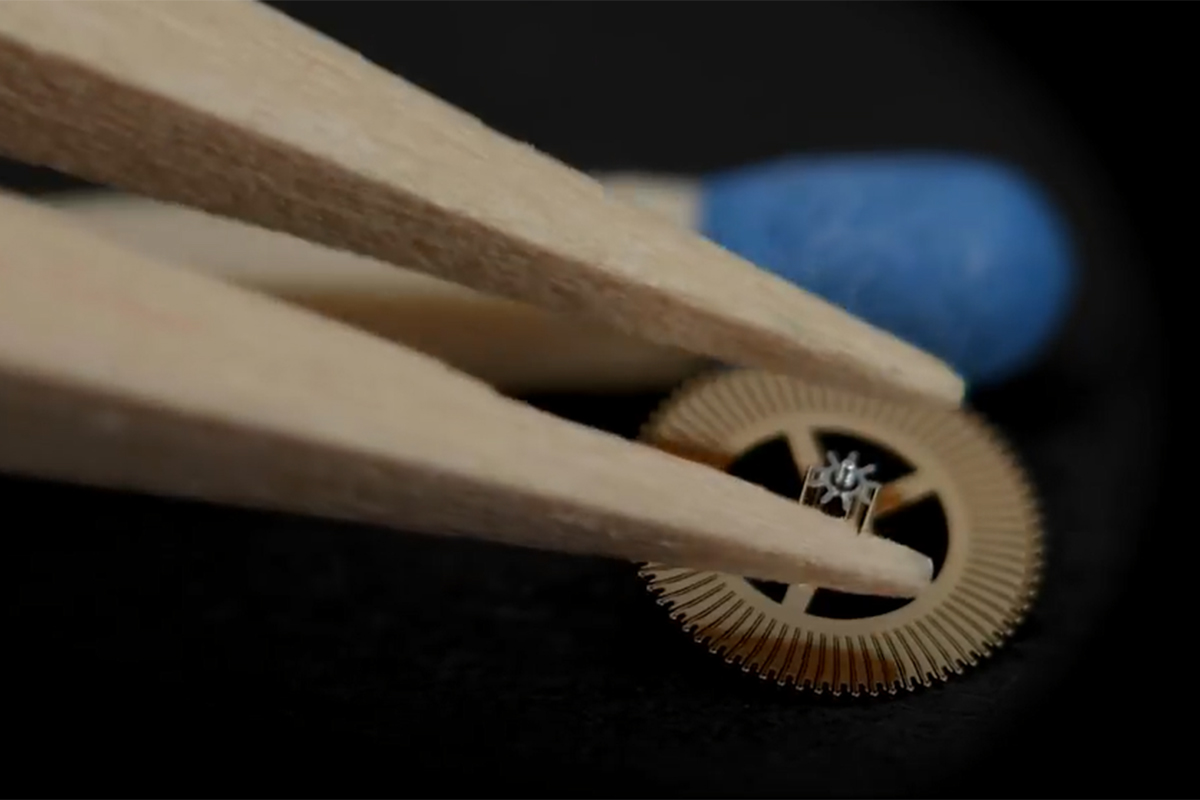 In pratica se ne va la classica ruota dentata per essere sostituita da un piccolo anello centrale dal quale si diffondono lunghi e sottilissimi elementi elastici che vanno ad agganciare con la massima precisione il pignone della lancetta dei minuti; e che per giunta è montato su un rubino (quello in più rispetto ai 29 del calibro 324), tanto per ridurre ulteriormente gli attriti.