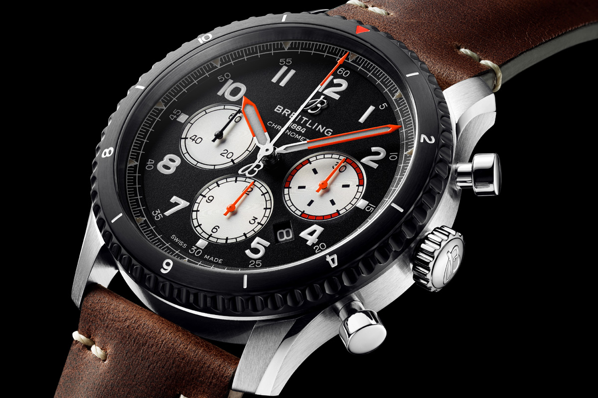 La linea Aviator 8 prende infatti ispirazione dall’Huit Aviation Department, creato da Willy Breitling all’interno della propria azienda, nel lontano 1938; il cui nome, a sua volta, faceva riferimento agli 8 giorni di autonomia degli orologi di bordo realizzati dal dipartimento, specializzato anche in cronometri e cronografi da polso per i professionisti del volo. Esemplari che ben presto conquistarono pure l’aeronautica militare; tant’è che la Royal Air Force commissionò all’Huit Aviation Department un’ingente fornitura. E fu così che gli orologi Breitling entrarono nelle cabine di pilotaggio di caccia, bombardieri & Co della II Guerra mondiale.