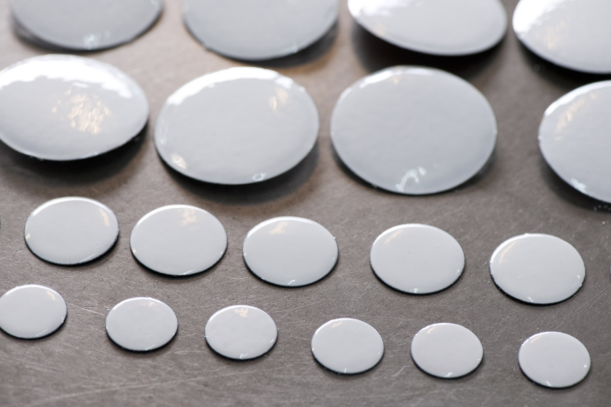 Mescolata con la giusta quantità di acqua, la fritta diventa una sorta di pasta che si stende sul disco del quadrante – realizzato in genere in leghe d’oro o rame. Di solito il primo strato (couche) è applicato sull’intera superficie metallica; anche sul retro (contre-émail), per evitare che in fase di cottura il metallo si incurvi o si deformi. In pratica, la “mano” di smalto posteriore serve a contro-bilanciare quella superiore con un effetto anti-distorsione… Comunque, prima di procedere, si deve attendere la totale essiccazione del colore.