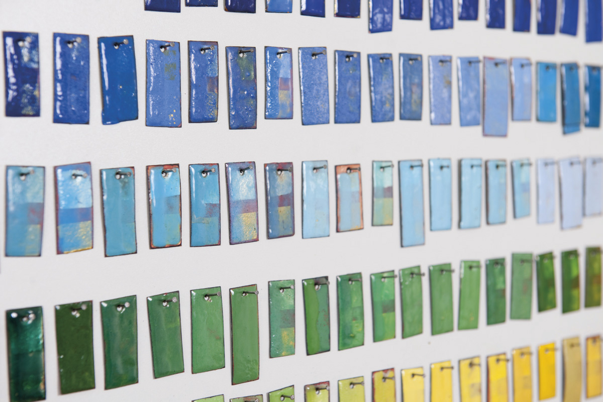 Una volta asciutto, ogni pezzo subisce quindi un passaggio in forno a temperature comprese fra i 600 e gli 800° C, durante il quale lo smalto si fonde integralmente con il metallo della base, fino a indurirsi e diventare stabile. A dire il vero, i passaggi in forno sono diversi, in relazione all’intensità cromatica che si vuole raggiungere. Minimo tre, se si tratta di tinte unite. Il problema è che ogni passaggio in forno rappresenta un’incognita, sia dal punto di vista cromatico, sia del risultato finale.