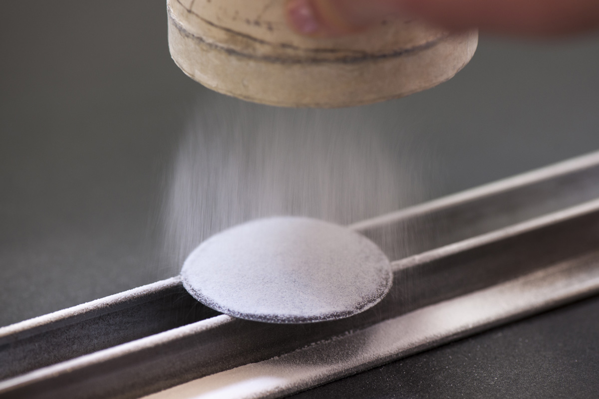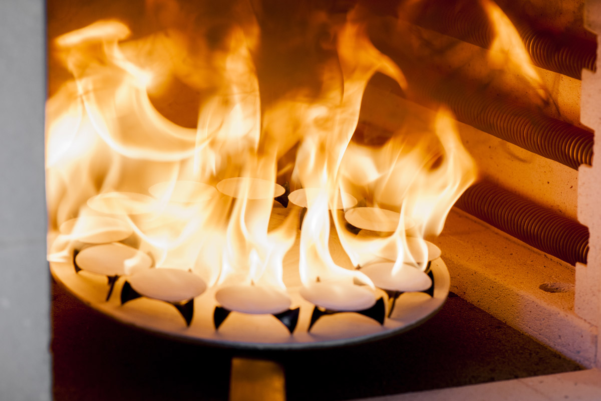 Il passaggio in forno avviene quindi a una temperatura molto elevata (superiore agli 800°), durante il quale il liquido prende fuoco immediatamente e lascia che la polvere si fonda con il quadrante. Operazione che viene ripetuta anche cinque o sei volte, fino a ottenere una superficie dal colore omogeneo, liscio e intenso; talmente brillante da non aver bisogno di alcuna lucidatura finale.