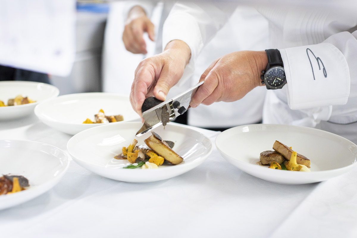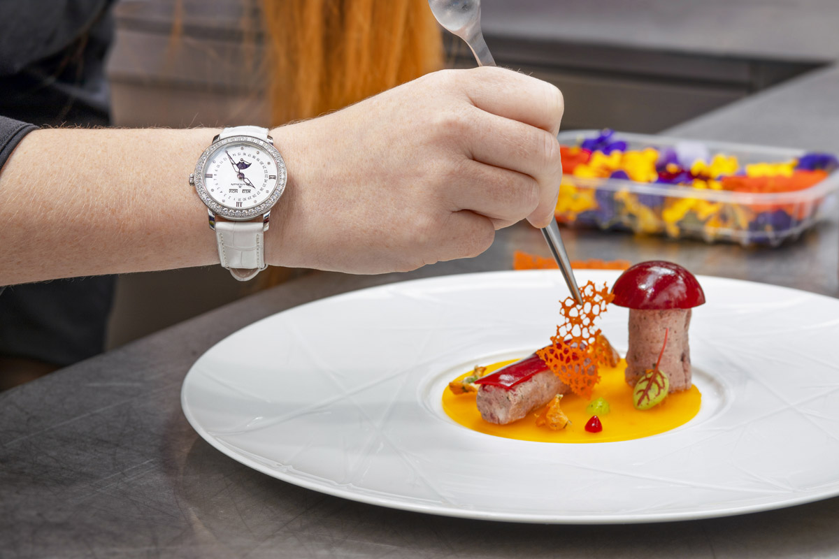Creatività, savoir-faire. E poi la precisione meccanica dei movimenti, eseguiti in sincrono dalla brigata di cucina, ripetuti sempre uguali e all’infinito, proprio come fossero ingranaggi di un orologio. È la precisione l’ingrediente segreto in un piatto di alta gastronomia. E anche uno dei valori che accomuna il mondo dell’haute horlogerie a quello dell’haute cuisine. Entrambe raggiungono, infatti, vette stellari grazie alla perfetta sincronia di moti e di gesti.