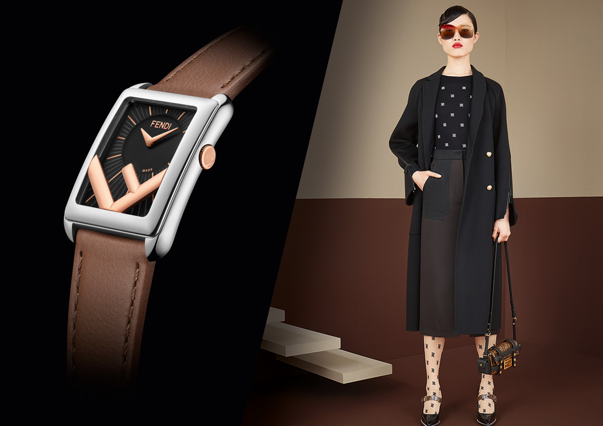 Il lungo racconto era doveroso per comprendere appieno il valore del Run Away Rectangle. Cioè il nuovo orologio della collezione Fendi Timepieces che rilegge in chiave rettangolare l’iconico modello dalla cassa tonda. Come nella versione round-shaped, anche questa proposta è caratterizzata dalla F rovesciata sulla parte bassa della cassa. Un’evoluzione del famoso Fun Fur, che lo stesso Lagerfeld aveva battezzato F en Folie, una pazzia di F, proprio per la sua posizione inaspettata. E che oggi dà vita alla collezione di accessori F is Fendi, inclusiva di borse, occhiali, foulard, bijoux e naturalmente orologi.