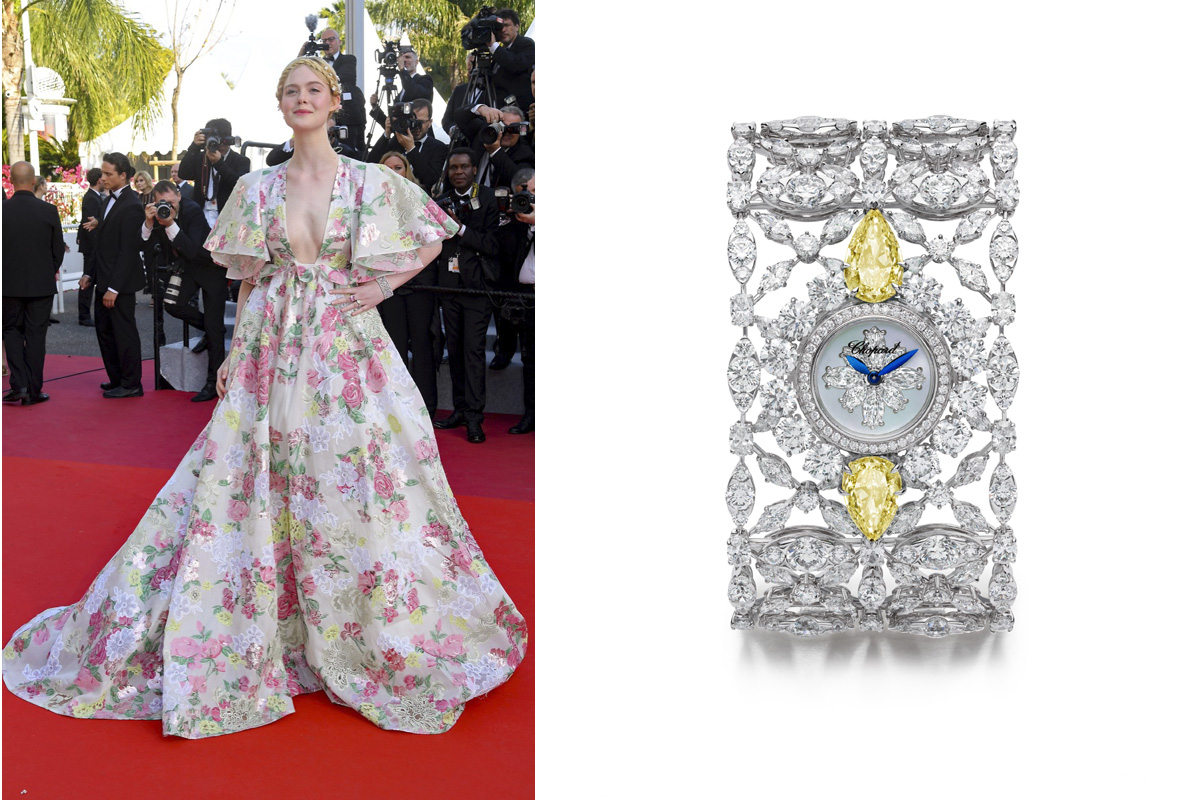 Le signore però non sono da meno (anche perché quando affronti il momento di gloria sulla scalinata scopri quanto la corretta gestione del tempo sia fondamentale). L’accesso alla sala è iper-regolamentato, ed è bene calcolare gli orari per evitare di mettersi in coda in attesa che le altre divine accontentino i fans adoranti e i fotografi a caccia dello scatto perfetto. Per esaltare l’eleganza di un abito di gala ci vuole un orologio di pari charme. Motivo per cui Caroline, responsabile della collezione donna, della gioielleria e dell’alta gioielleria, mette insieme le sue competenze e porta sulla Croisette orologi da urlo.
