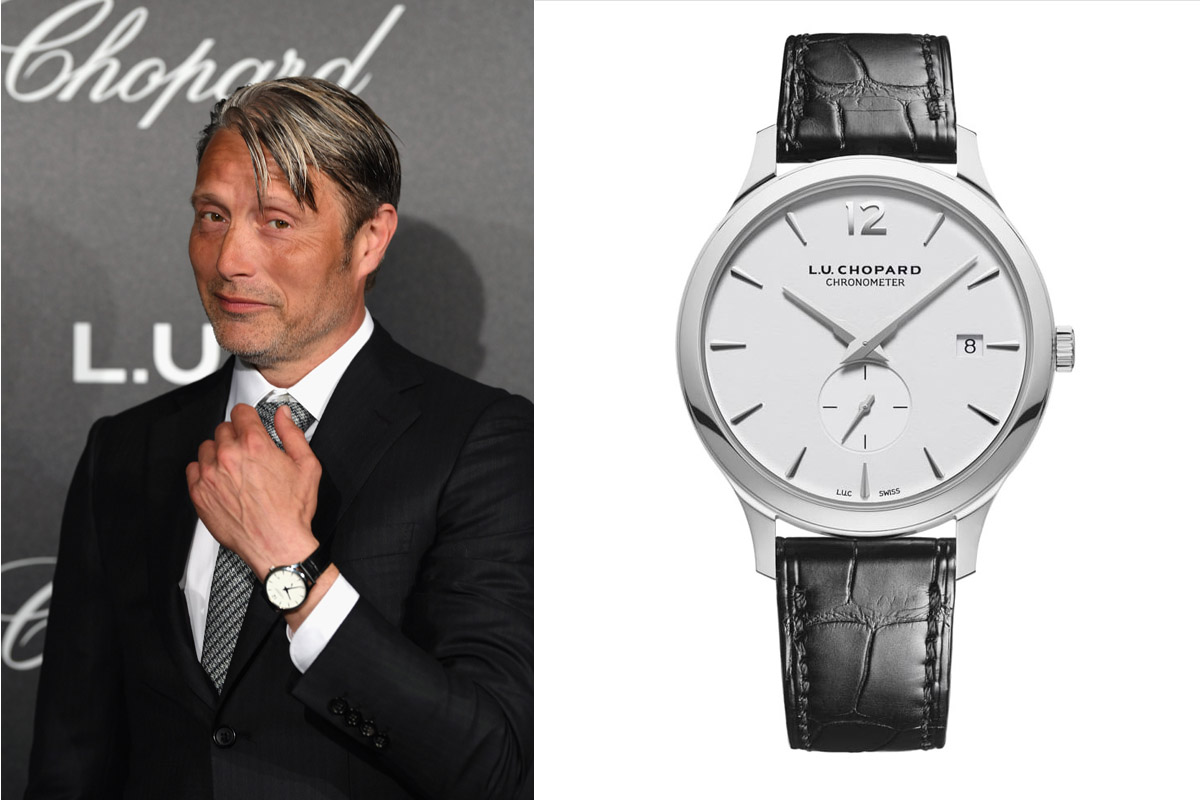 Per quanto riguarda gli uomini, si sa che quasi sempre è proprio l’orologio l’elemento chiave a rendere prezioso lo smoking d’ordinanza. E Karl- Friedrich, con la sua esperienza alla guida della manifattura di Fleurier dove si producono i movimenti L.U.C, è il perfetto mentore di divi in cerca di quel tocco di classe in più. Da grandi artisti quali sono, gli attori scostano il braccio dal corpo quanto basta per offrire agli intenditori una fugace occhiata del loro modello preferito, in un gioco di vedo-non-vedo seducente proprio perché sempre sussurrato.