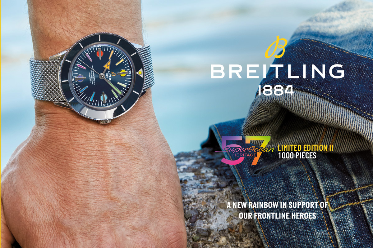 Breitling, appunto, ha deciso di dedicare agli operatori sanitari la seconda edizione del Superocean Heritage ’57 Limited Edition che, in piena pandemia, era stato accolto come un faro di speranza. I dettagli di colore che spiccano sul quadrante al 3, 6, 9 e 12, così come gli indici e le lancette luminescenti, sono un chiaro richiamo all’arcobaleno, simbolo dell’impegno di medici e infermieri. «Siamo rimasti stupiti dal successo del Superocean Heritage ’57 Limited Edition», ha spiegato il Ceo di Breitling, Georges Kern. «Questo successo ci ha suggerito che potevamo fare qualcosa per gli straordinari operatori sanitari. Abbiamo voluto ricambiare in modo tangibile i loro sacrifici, dedicando proprio a loro questa nuova versione del nostro orologio dai colori arcobaleno».