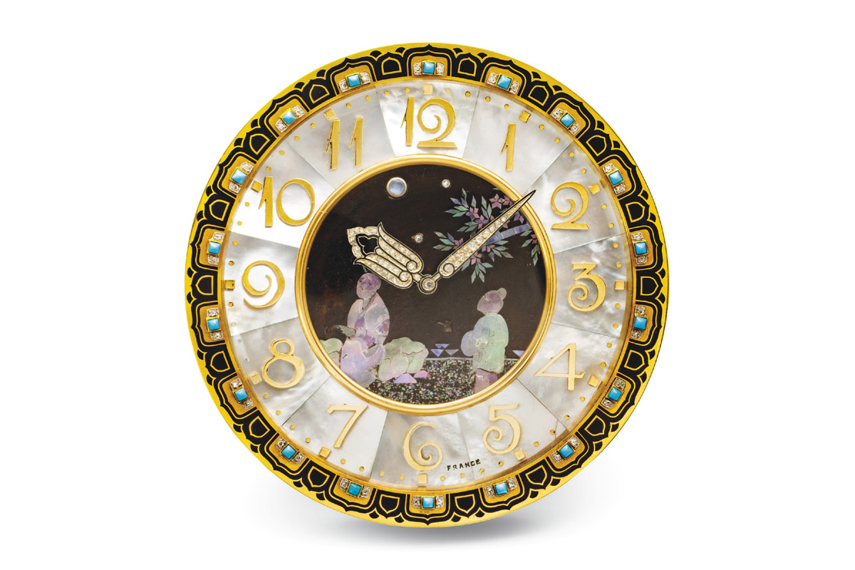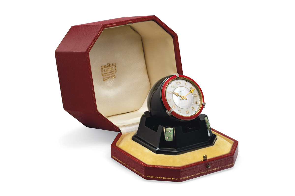 Lancette d’oro, smaltate o incastonate di diamanti, a forma di cuori, frecce o tulipani persiani. Quadranti in avorio o in smalti policromi. Casse intagliate nelle pietre dure – giade, agate, lapislazzuli -, con intarsi di madreperla e ornamenti preziosi, decori di zaffiri e rubini cabochon. Pendulette come massima espressione dell’estro eclettico di Cartier. Declinate in tutte le fogge e materiali: a schermo, a disco rotante, a cronoscopio… Incluse le cosiddette “misteriose”, in cui le lancette non appaiono collegate ad alcun ingranaggio apparente ma sembrano fluttuare nel vuoto, animate da chissà quale forza invisibile.