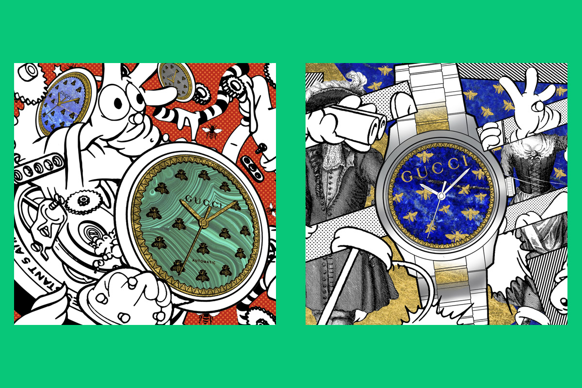 Alessandro Michele, Direttore creativo di Gucci, ama fare le cose a modo suo. Anche in un settore in cui non ha competenza specifica come quello degli orologi. La sua attenzione ha ora per epicentro il G-Timeless, modello automatico con quadrante in pietre dure e pattern iconico-decorativo dell’ape dorata, sul quale il brand sta puntando molto. L’abilissimo, a tratti funambolico, uso dei social media da parte di Michele ha ampliato notevolmente la visibilità del brand, oltre che del designer stesso; non solo tra i nativi digitali under-twenty, che lo seguono su Instagram e Pinterest, ma anche tra i web-utenti di tutte le età. Una platea evidentemente funzionale anche al mercato dei beni per la persona, tra i quali appunto gli orologi.