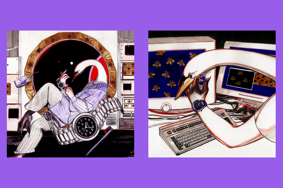 Ecco allora che Tishk Arzanji, di base londinese, immagina il volo delle api fuori dall’area del quadrante, anche se sempre sulla circonferenza di un circolo orario. L’inglese Kieron Livingstone integra invece l’orologio in un fumetto, decontestualizzandolo completamente; mentre il californiano Balfua lo immagina all’interno di uno scenario sottomarino. E così gli altri artisti che vedono il G-Timeless in modo surreale e magico, con risultati particolarmente originali nel caso del russo Andrey Kasay. Tutti i partecipanti, comunque, contribuiscono al progetto con un caleidoscopio di visioni creative che proiettano l’orologio fuori del mondo prettamente tecnico, per fargli incontrare il linguaggio della fantasia.