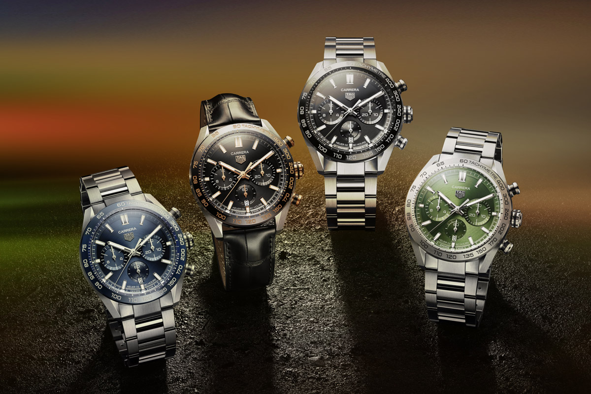 Squadra che vince non si cambia: proprio per questo la nuova collezione Carrera si evolve senza rivoluzioni. Sebbene le modifiche siano piuttosto evidenti, oltre che sostanziali, la forte identità che tanti successi ha portato negli anni è lì, intatta, da vedere. Quattro le nuove referenze. La cassa tonda in acciaio, di 44 millimetri di diametro, è abbinata al bracciale e a tre colorazioni del quadrante: nero, blu e un inedito quanto intrigante verde. Se si vuole un tocco particolare, però, è possibile scegliere un’elegante versione con cassa in acciaio, oro rosa e carbonio, accostata a un cinturino in pelle di alligatore nero.