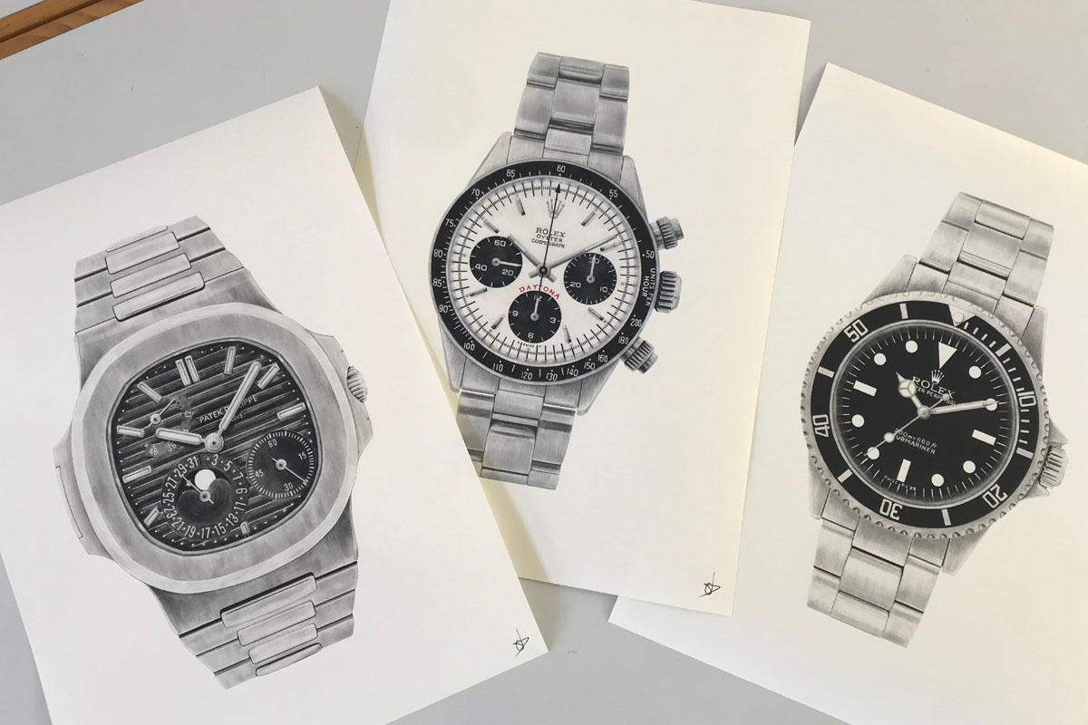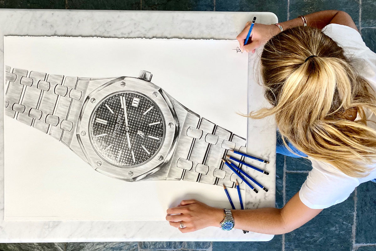 Constance Tournier: Non ancora, ma spero di diventarlo presto. Mi piacerebbe collezionare modelli maschili, comunque: adoro infatti vedere un orologio da uomo al polso di una donna. Indosso spesso quello di mio padre, un Rolex 16610 LV. Fra i modelli che ho disegnato ci sono anche Rolex Submariner 5513 e il Rolex Daytona 6263. E poi il Patek Philippe Nautilus 5712, l’Audemars Piguet Royal Oak 5402, e appunto l’Omega Speedmaster 105.012. Mi ha impressionato letteralmente la manifattura di Patek Philippe. Il modello più impegnativo da illustrare, invece, è stato il Royal Oak per il suo quadrante à damier.