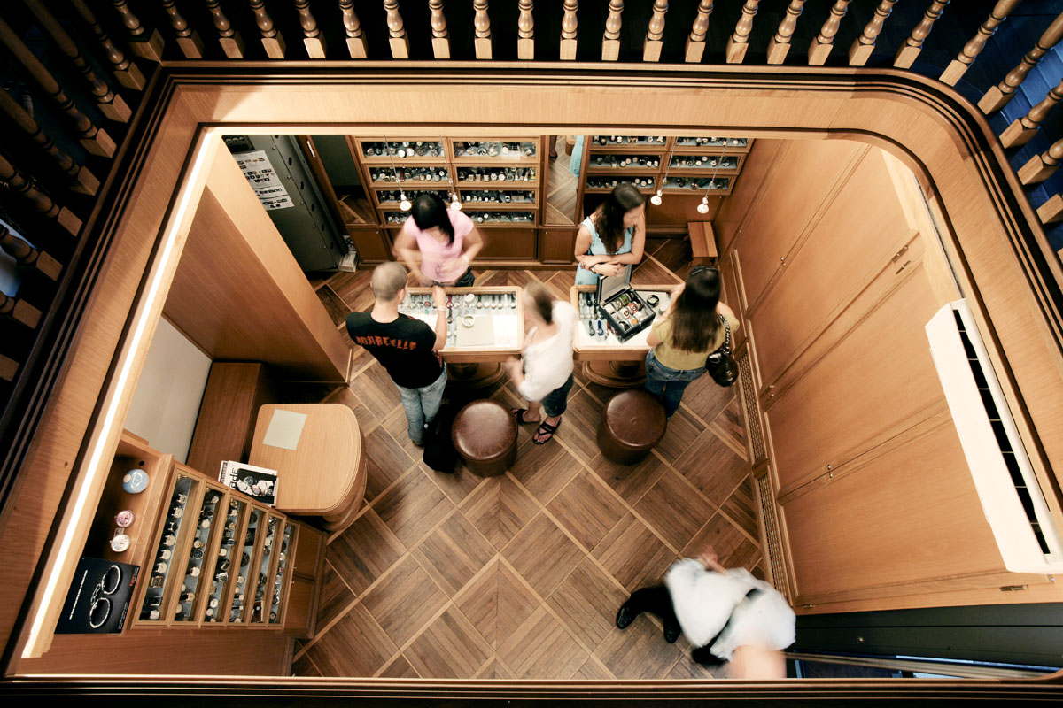 Quadrante bianco effetto smalto, numeri arabi, corona cabochon in finto zaffiro, con firma Grimoldi: è il regalo per la prima Comunione il primo orologio nella memoria di Giorgio Grimoldi. Cresciuto in azienda, come i due fratelli e la sorella. «Abitavamo sopra alla bottega. Ne abbiamo sempre respirato l’aria. E nel periodo natalizio», racconta, «andavamo tutti a dare una mano: pulire gli argenti, fare pacchetti regalo, aprire la porta». Entro i 20 anni, sono diventati operativi tutti e quattro. Una scelta? Oppure un obbligo morale? «Ci ha spinti la passione», risponde. «Fin da piccolini, ci ha sempre appartenuto il mondo delle pietre, dei gioielli e dell’antiquariato».