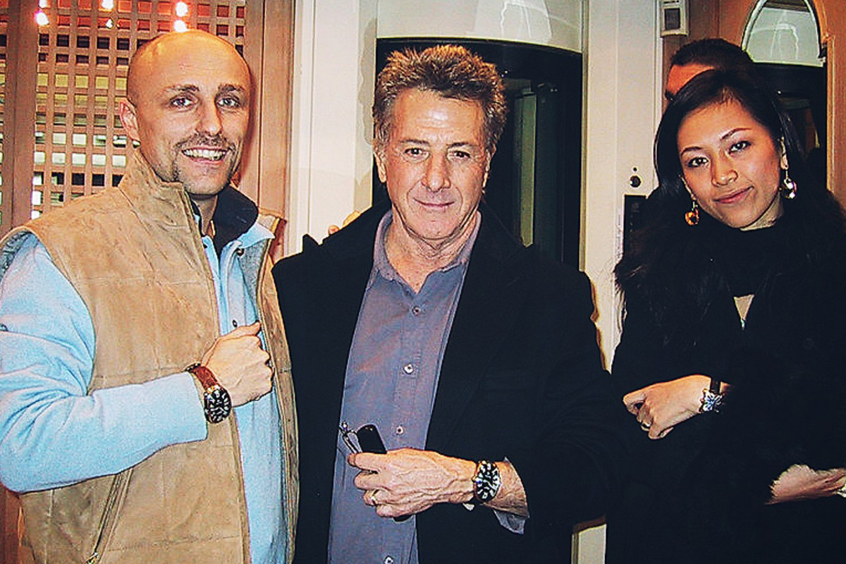 Gli orologi Grimoldi con gli scudetti del Milan o dell’Inter sono un’ulteriore conferma della lungimiranza di Anselmo Grimoldi, che ha siglato negli anni molte sponsorizzazioni sportive. Una leva per far conoscere Grimoldi Milano in tutto il mondo. Portando tutto il mondo da Grimoldi Milano. «Indimenticabile per me», rivela Giorgio, «resta l’incontro con Dustin Hoffman. Quando entra in negozio uno di questi personaggi ti si tappa il cuore. Il mio inglese, poi, all’epoca era stentato. Lui comprò un orologio per sé e uno per la figlia. Poi la ragazza che lo accompagnava gli disse: “Mr. Hoffman, ora dobbiamo andare”. E lui le rispose: “Aspetta un attimo, non vedi che sto parlando con il mio amico Giorgio?”. Al momento dei saluti, mi disse “Facciamolo all’italiana”. E ci abbracciammo».
