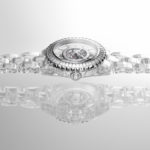 Ma non è finita qui. Ulteriormente rimpicciolita nelle dimensioni, la figuretta di Gabrielle Chanel ritorna anche nel nuovo Mademoiselle J12 Acte II. Seguito ideale dell’esemplare di tre anni fa, trasporta l’immagine dal quadrante alla corona, cui è sospesa a mo’ di charm. Anche in questo caso forgiata in oro bianco, la micro Coco (misura circa un centimetro e mezzo d’altezza) è letteralmente vestita di diamanti, dalla testa ai piedi. Sì, perché lo spirito dei Coco watch sarà anche ludico, ma la collezione di Coco watch è destinata solo a poche, fortunatissime signore.