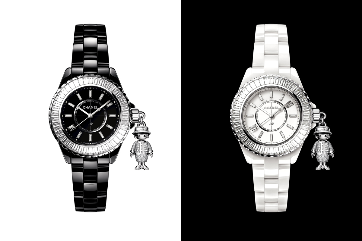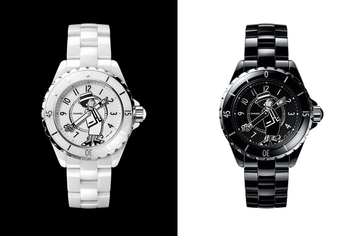 Tutto è cominciato nel 2017, quando è uscita la prima serie del Mademoiselle J12. Un orologio (anzi due: uno bianco e uno nero, secondo i codici cromatici della collezione) ironico eppure serissimo, che faceva riferimento alla storia dell’orologeria. Chiaramente ispirato allo storico Mickey Mouse di Ingersoll, invece del personaggio di Disney riportava al centro del quadrante la silhouette di Mademoiselle Coco. In divisa d’ordinanza – tailleur bouclé, décolleté bicolori e paglietta –, indicava ore e minuti con le braccia, proprio come Topolino del 1933.