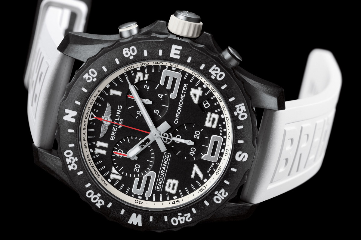 Il Breitlight, sviluppato e brevettato dal marchio, si aggiunge alla lista dei materiali creati dalle case orologiere per dar forma alle proprie casse: dal Texalium di Hublot al Carbotech di Panerai. È una sorta di polimero termoplastico rinforzato con l’inserimento di fibre di carbonio; come gli altri polimeri di questa derivazione può essere modellato per iniezione o stampo (alcuni possono persino “filati” in fibre sottilissime), con un solo risultato: la leggerezza, appunto. E leggero era anche l’orologio cui, nelle intenzioni della Maison, si ispira l’Endurance Pro, ossia lo Sprint degli anni ’70 con cassa in resina a cuscino. Forma scelta in quel decennio da diverse case per i propri sportivi, Heuer Autavia in primis.