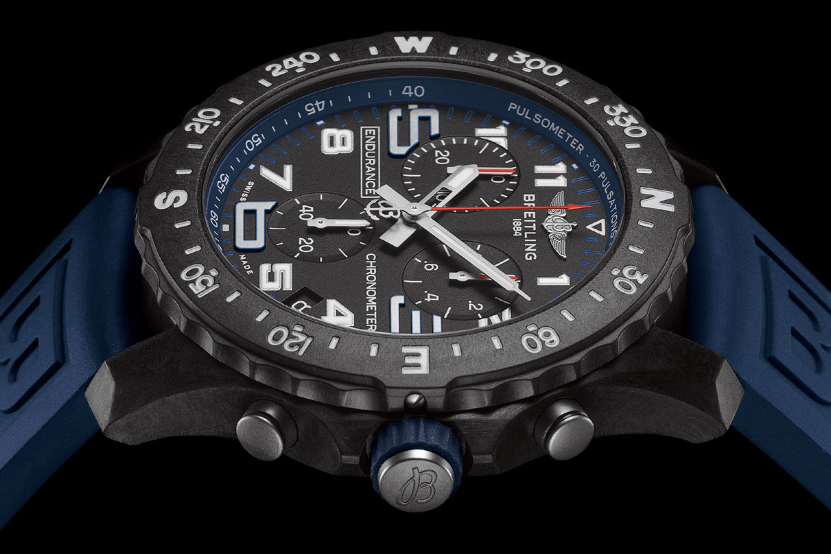 Partiamo da quest’ultimo, non una novità per la Maison. Lanciato in prima mondiale a Baselworld 2016 sull’Avenger Hurricane, questo materiale è “3,3 volte più leggero del titanio e 5,8 volte più leggero dell’acciaio inossidabile”, come ricorda Breitling con orgoglio. Numeri stupefacenti, ma che cosa significano? Intanto, che nella cassa dell’Endurance Pro fa capolino quel diavolo di un carbonio.