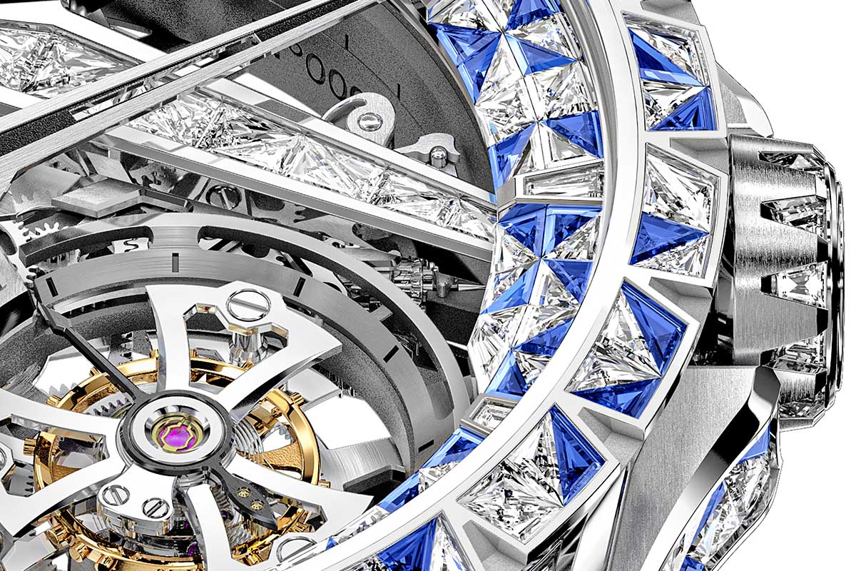 Ecco, già questa breve descrizione fa capire il perché del prezzo del Roger Dubuis Excalibur Superbia: 900mila euro circa (per un esemplare unico, che potrebbe però essere seguito da realizzazioni con pietre o movimenti diversi). Il motivo non sta solo nel valore delle pietre preziose e nemmeno nel movimento di manifattura, scheletrato, con doppio tourbillon e bariletto “volante”; ma anche e soprattutto nel lungo, difficilissimo lavoro manuale che comporta.
